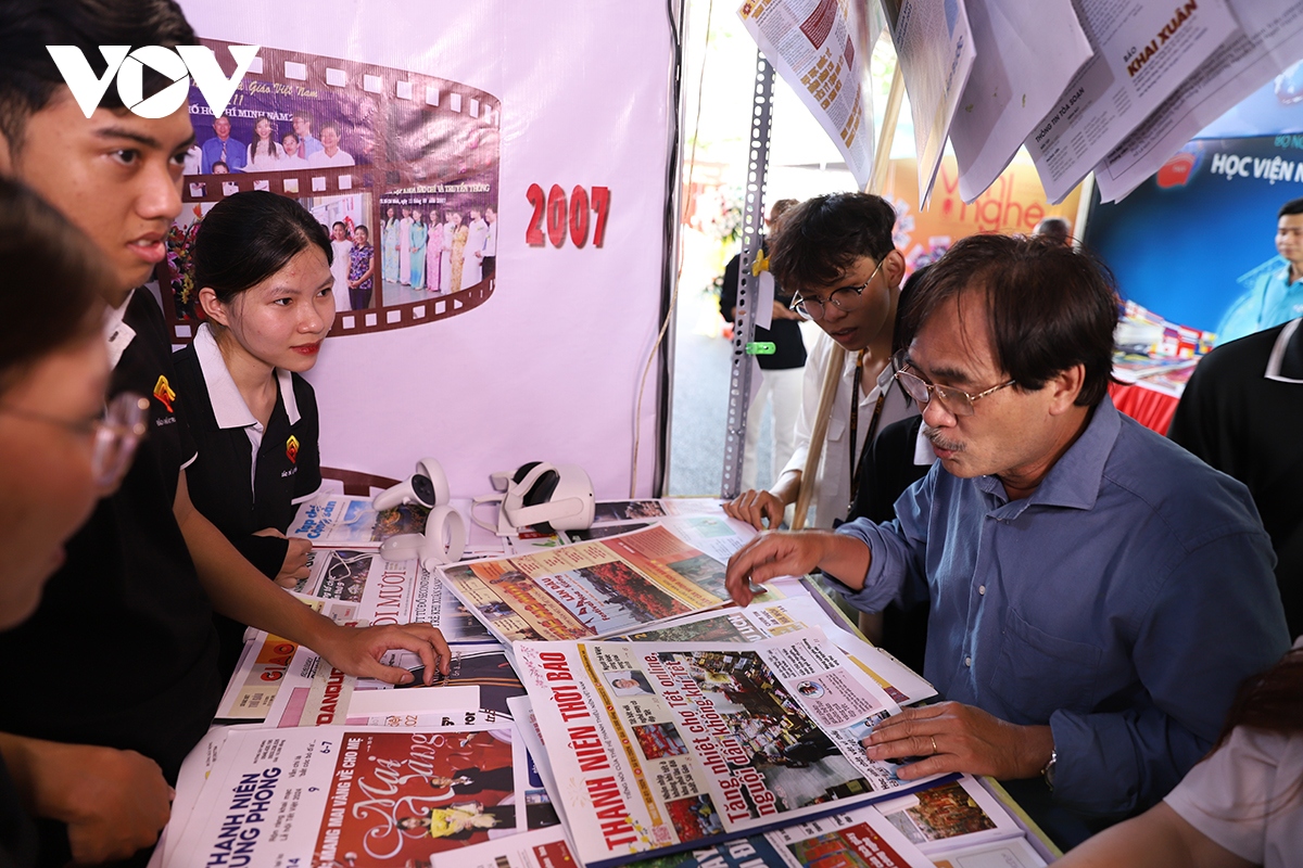Gian trưng bày của VOV đón nhiều thế hệ lãnh đạo báo chí và các đồng nghiệp tham quan. |