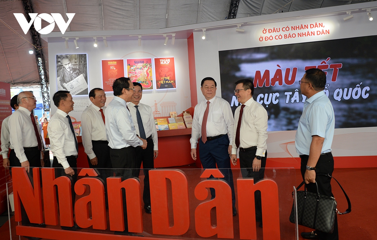 Lãnh đạo Đảng, Nhà nước thăm gian trưng bày của báo Nhân Dân. |