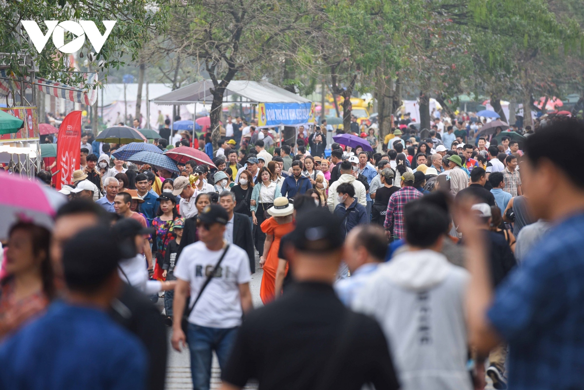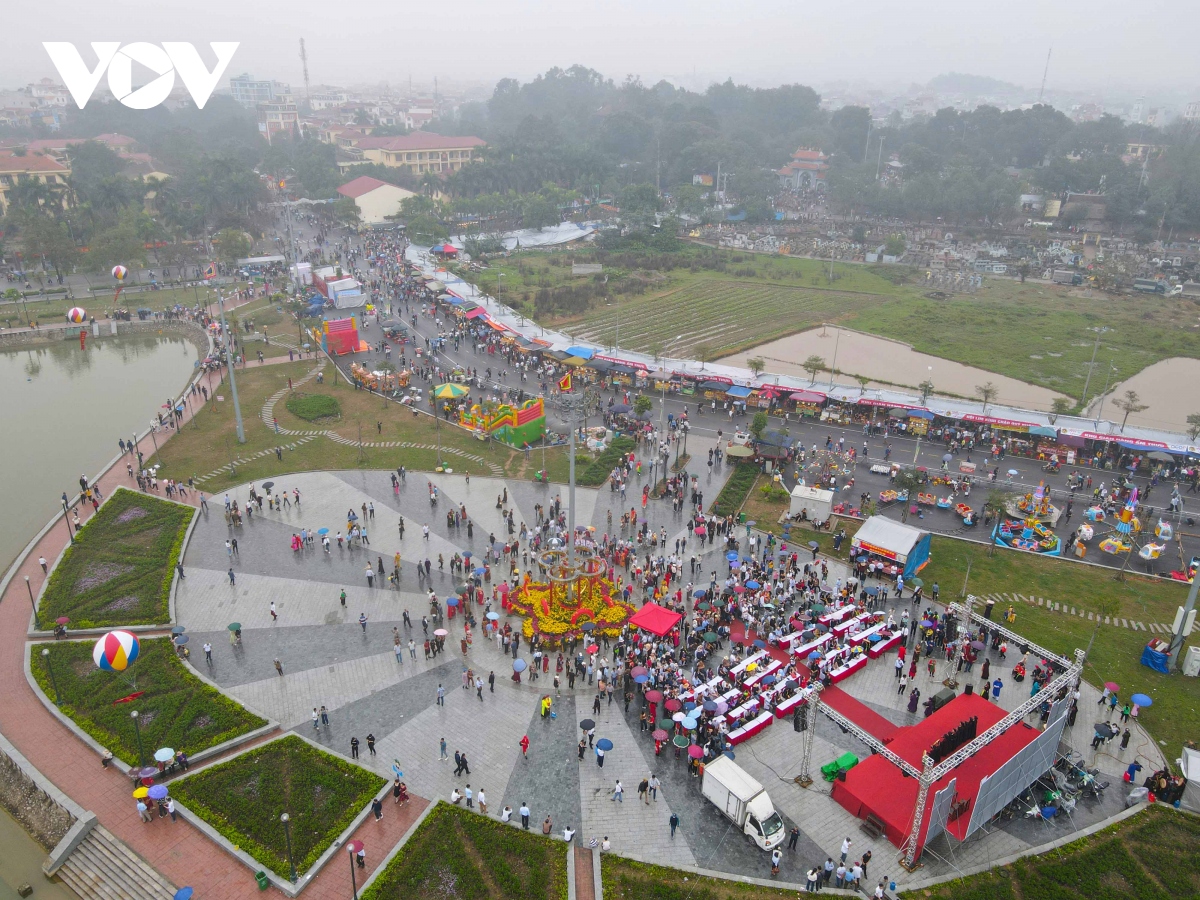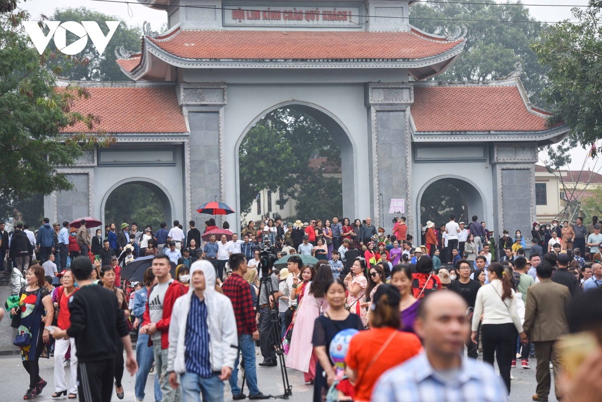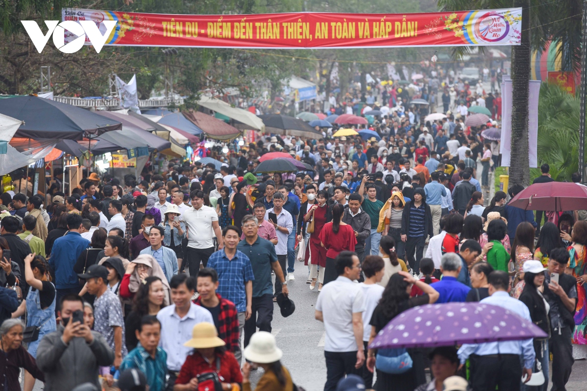 Theo ghi nhận của phóng viên Báo Điện tử VOV.VN, mặc dù trời mưa phùn nhẹ, nhưng rất đông người dân và du khách thập phương đã đổ về đây nghe hát quan họ và tham gia các trò chơi dân gian. |