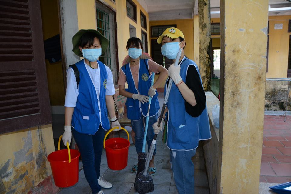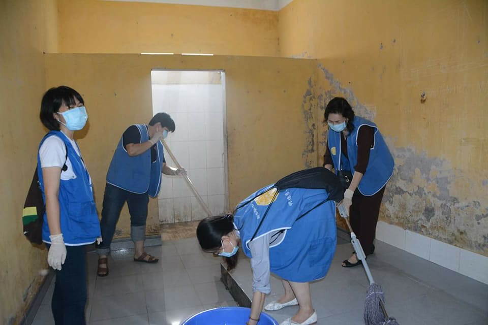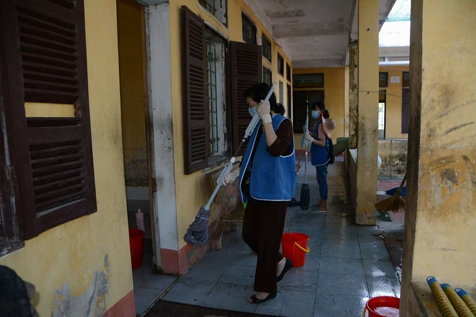 Nhóm khác tiến hành vệ sinh nhà ở từ trong ra ngoài