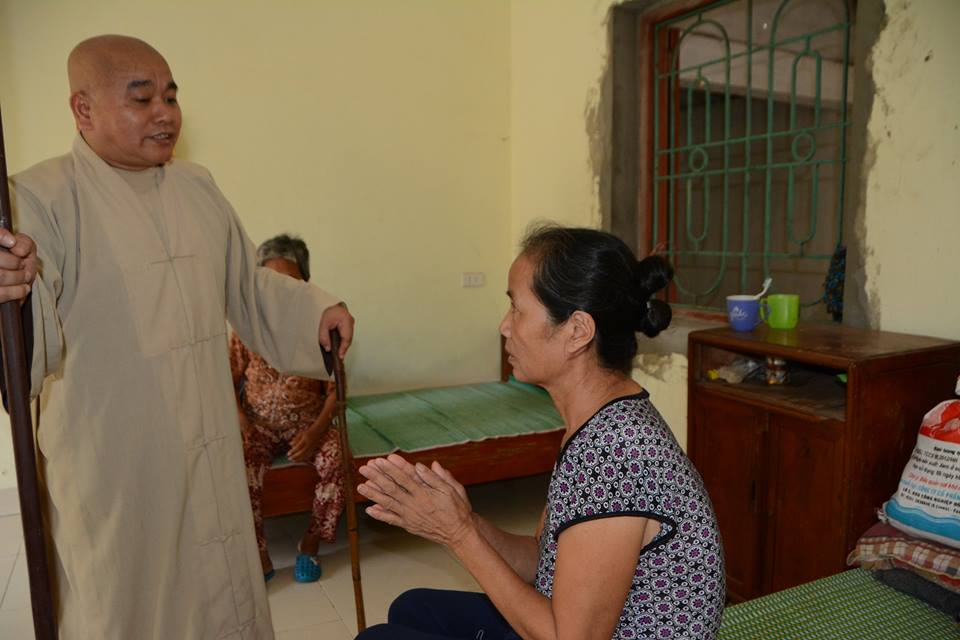 Đại đức Thích Gải Hiền, Hội trưởng Hội Sự Nghiệp Từ Thiện Minh Đức đi thăm hỏi các bệnh nhân