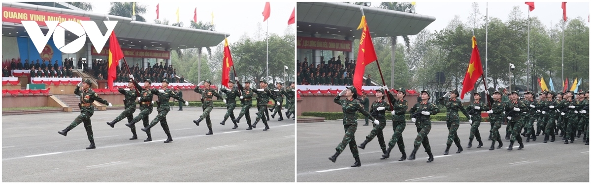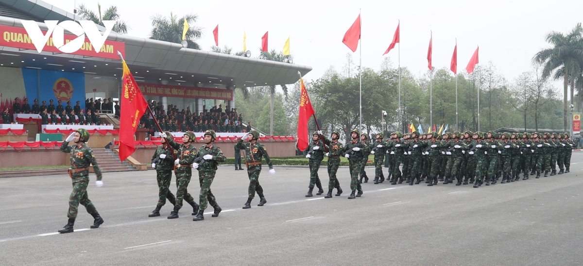 Khối Lực lượng tác chiến Không gian mạng và Khối Lực lượng gìn giữ hòa bình Việt Nam tiến vào lễ đài. |