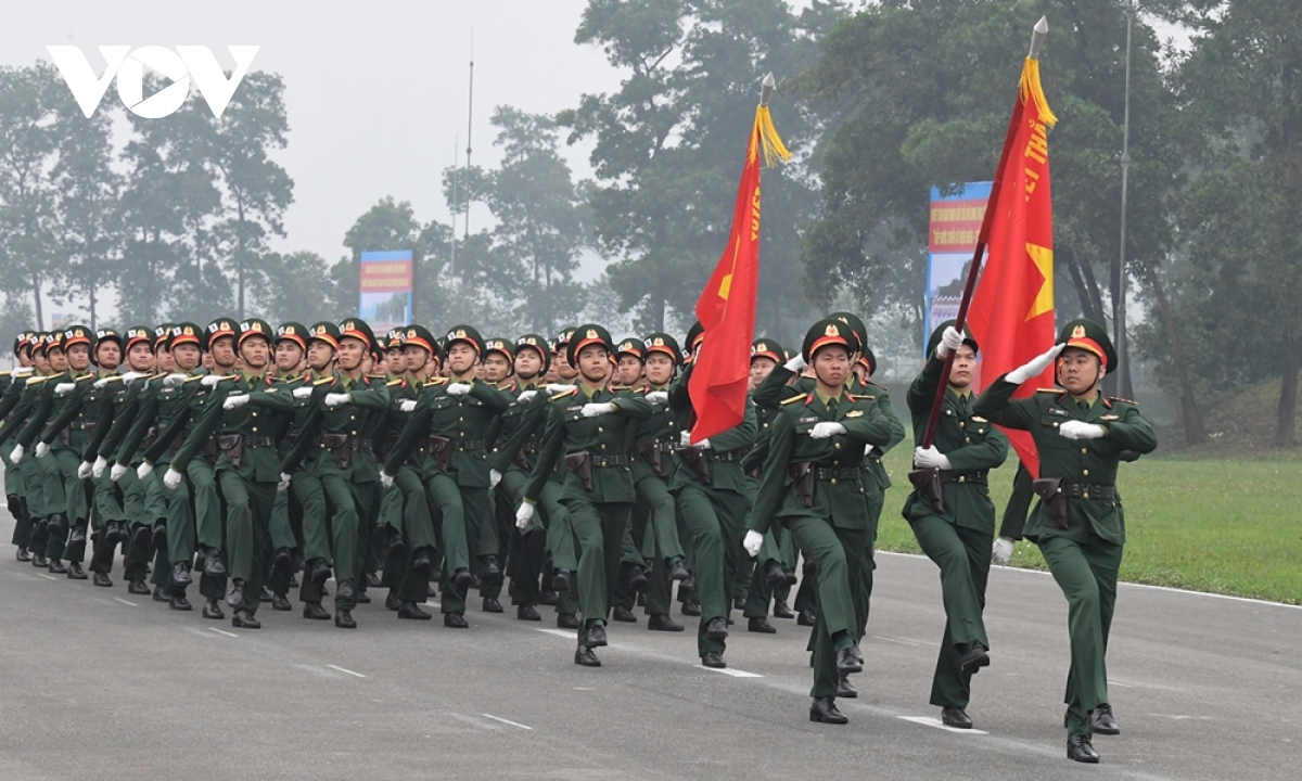 Khối sĩ quan Lục quân đại điện cho binh chủng hợp thành của Quân đội nhân dân Việt Nam tiến vào lễ đài. |