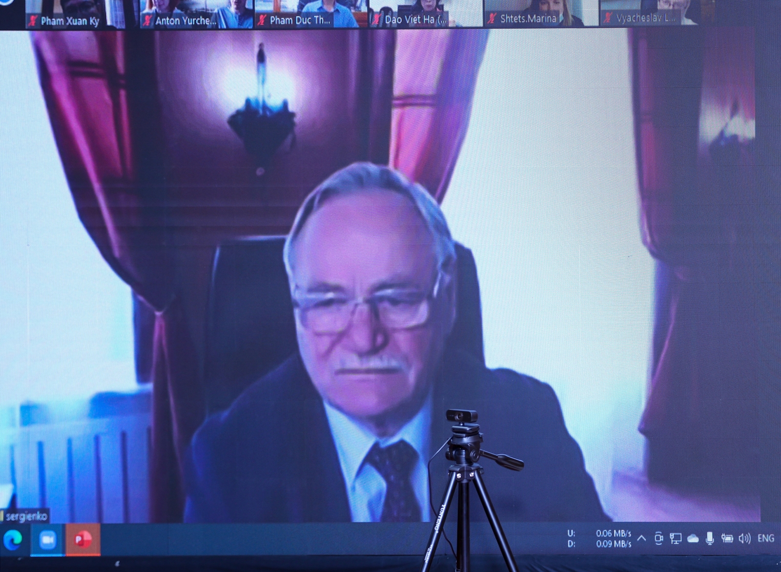 | GS. VS. Valentin Sergienko – Phó Chủ tịch Viện Hàn lâm Khoa học Nga, Chủ tịch Phân viện Viễn Đông phát biểu trực tuyến từ Vladivostok |