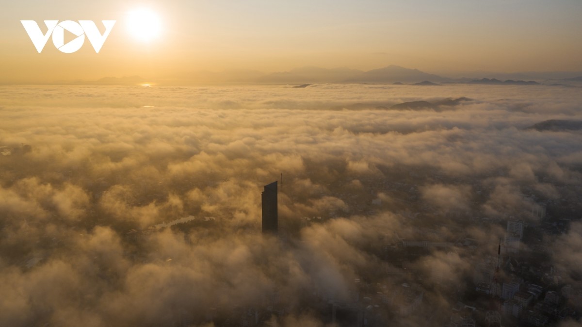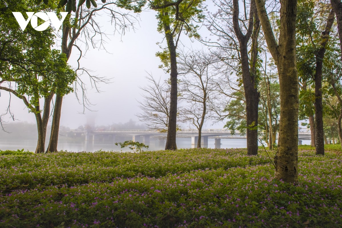 Chợt một sáng, nhìn từ trên cao, cả thành Huế chìm trong làn sương mờ ảo của tiết cuối đông đầu xuân. |