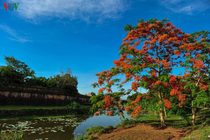 Hoa phượng đỏ mùa hạ như dệt cho Huế chiếc áo rực rỡ giữa trời xanh.