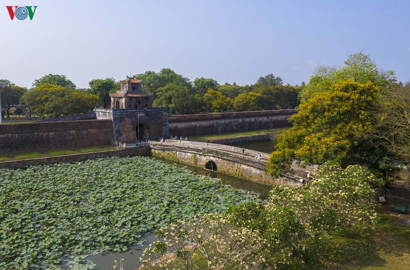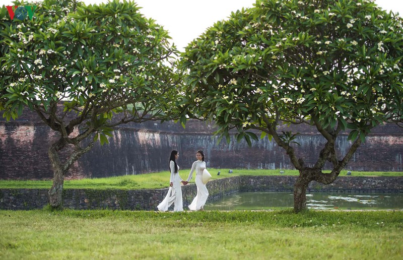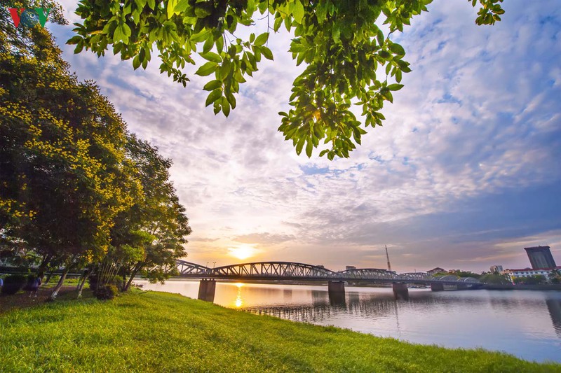 Huế êm đềm với những công viên xanh màu hai bên bờ sông Hương, màu phượng đỏ thắm của mùa hè hay màu hoa điệp vàng khoe sắc trước cổng trường Quốc Học, trường Hai Bà Trưng.