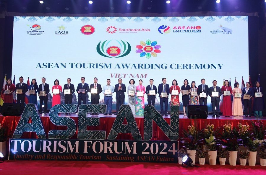 Ba thành phố đại diện cho Việt Nam gồm: Huế (tỉnh Thừa Thiên Huế), Vũng Tàu (tỉnh Bà Rịa - Vũng Tàu), Quy Nhơn (tỉnh Bình Định) mới đây được vinh danh và trao giải thưởng “Thành phố TP du lịch sạch ASEAN” năm 2024. Giải thưởng nằm trong khuôn khổ Diễn đàn Du lịch Đông Nam Á ATF. Ảnh: PV/VOV-Vientiane |