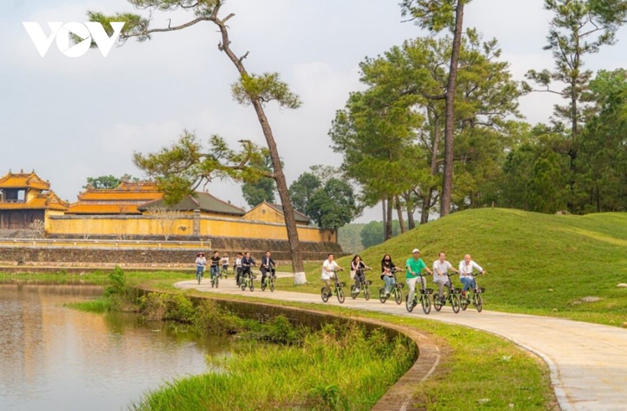 Du lịch xanh sẽ là định hướng mới của ngành du lịch để thu hút khách đến với TP. Huế. Đầu tháng 2 năm nay, Trung tâm Bảo tồn Di tích Cố đô Huế khai trương tuyến du lịch xanh, thân thiện môi trường tại khu vực lăng vua Gia Long, xã Hương Thọ, TP. Huế. Ảnh: Lê Hiếu/VOV |