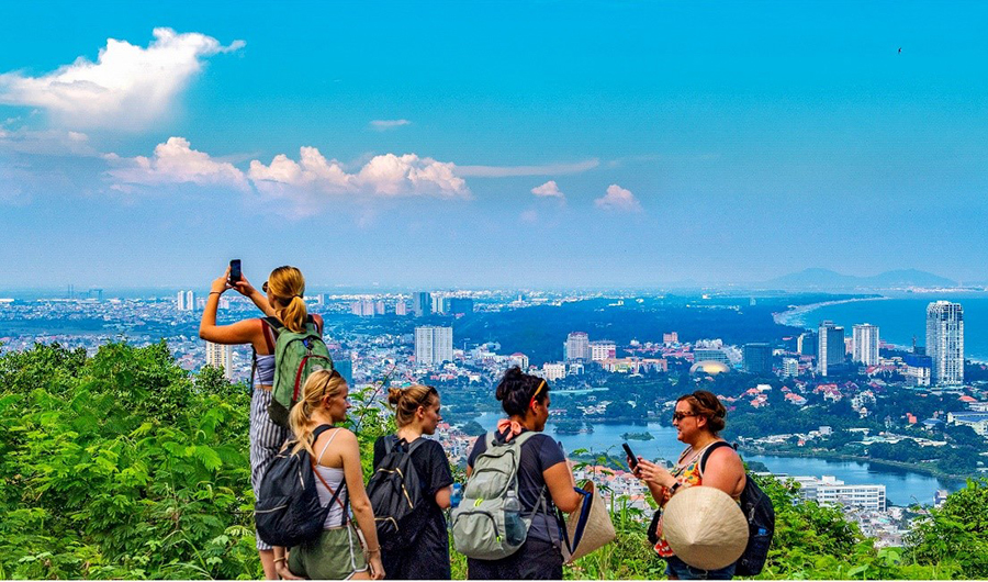 Du khách nước ngoài ngắm toàn cảnh Vũng Tàu từ đỉnh Núi Nhỏ. Ảnh: Phạm Thuận/ baobariavungtau.com.vn |