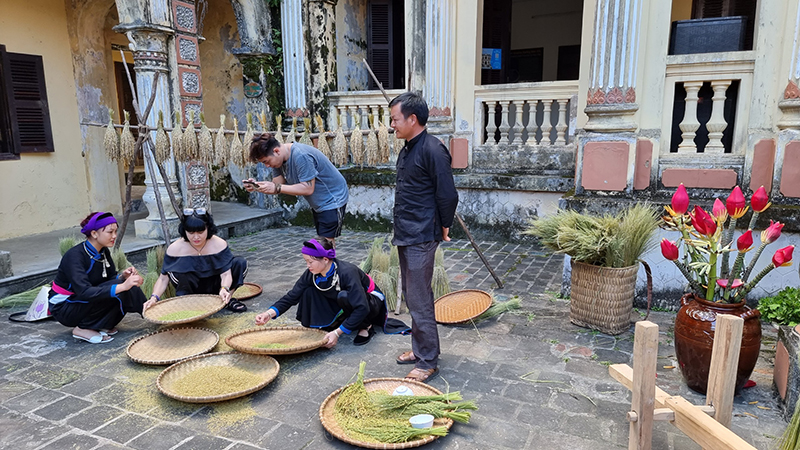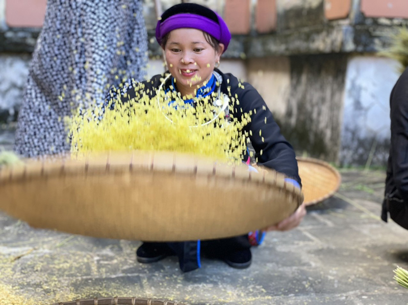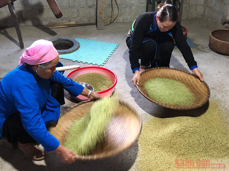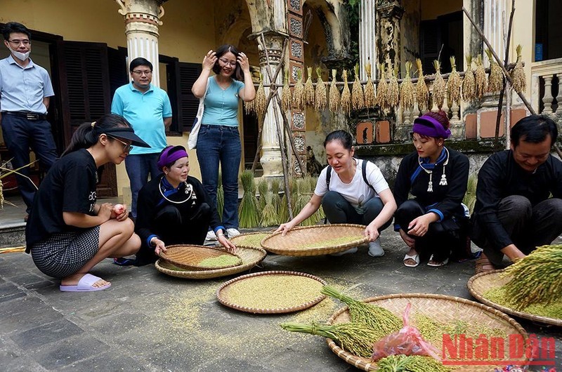 Qua lễ hội, du khách được biết thêm về quy trình làm cốm của đồng bào địa phương cũng như tự tay trải nghiệm cách làm cốm. Ảnh: Minh Tâm/ Báo Nhân dân |
