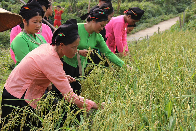 Người dân vùng cao thu hoạch lúa về làm cốm. Nguồn: bacha.laocai.gov.vn |