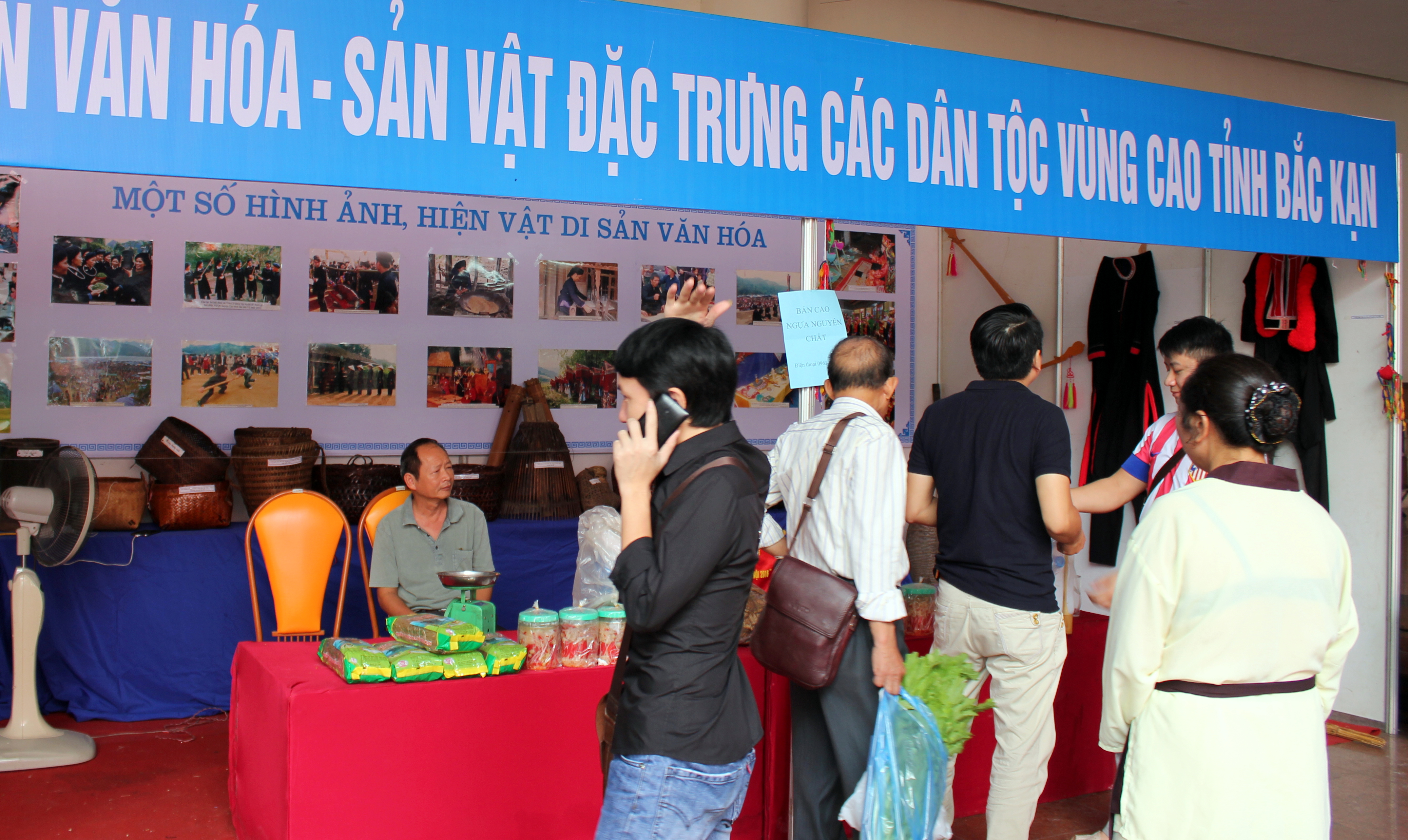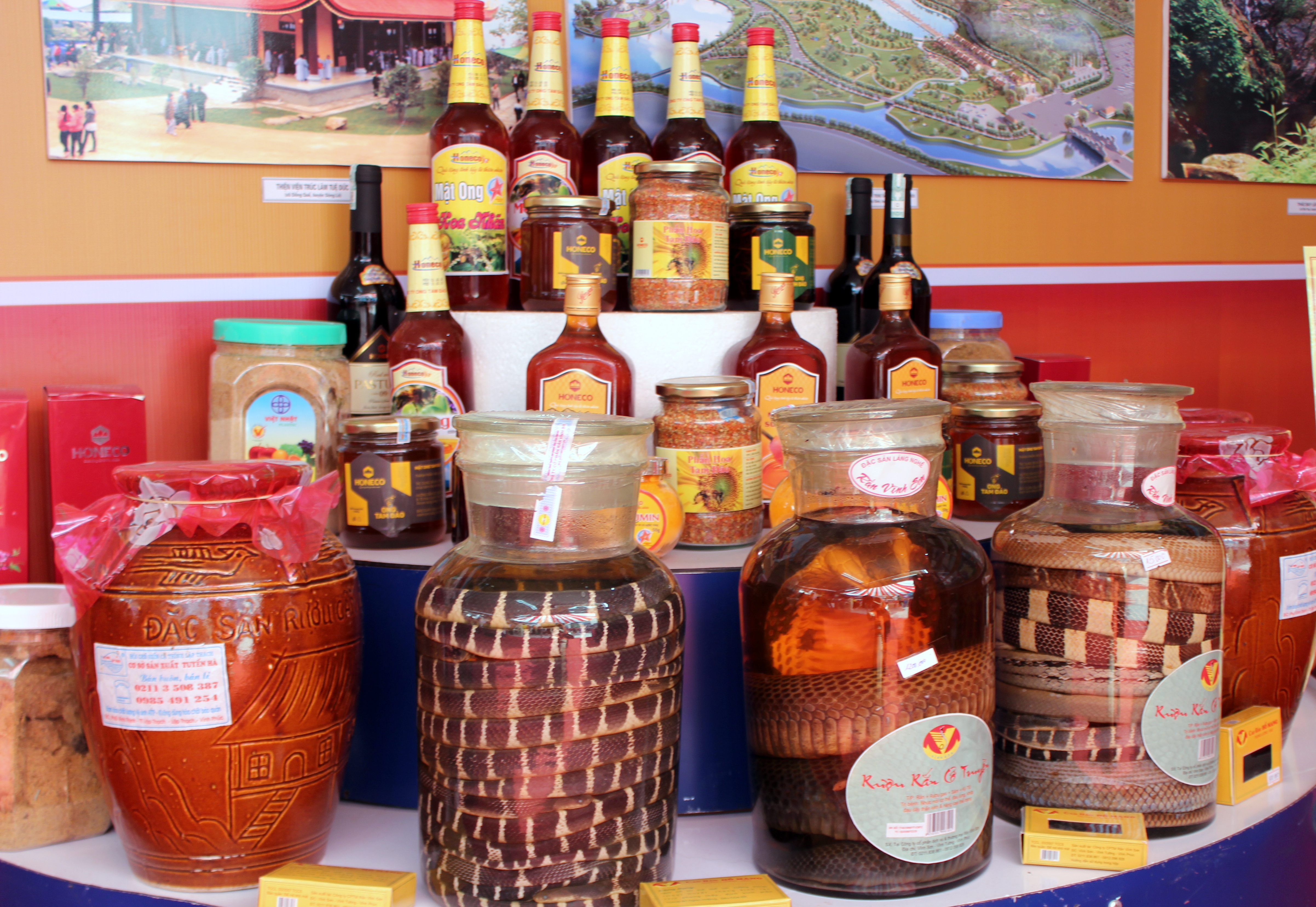 Nhiều sản vật núi rừng được trưng bày và bán cho khách thăm quan