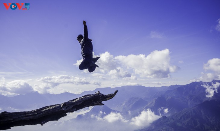 Đứng trên đỉnh Lảo Thần du khách có thể với tay chạm vào mây. ảnh: VOV