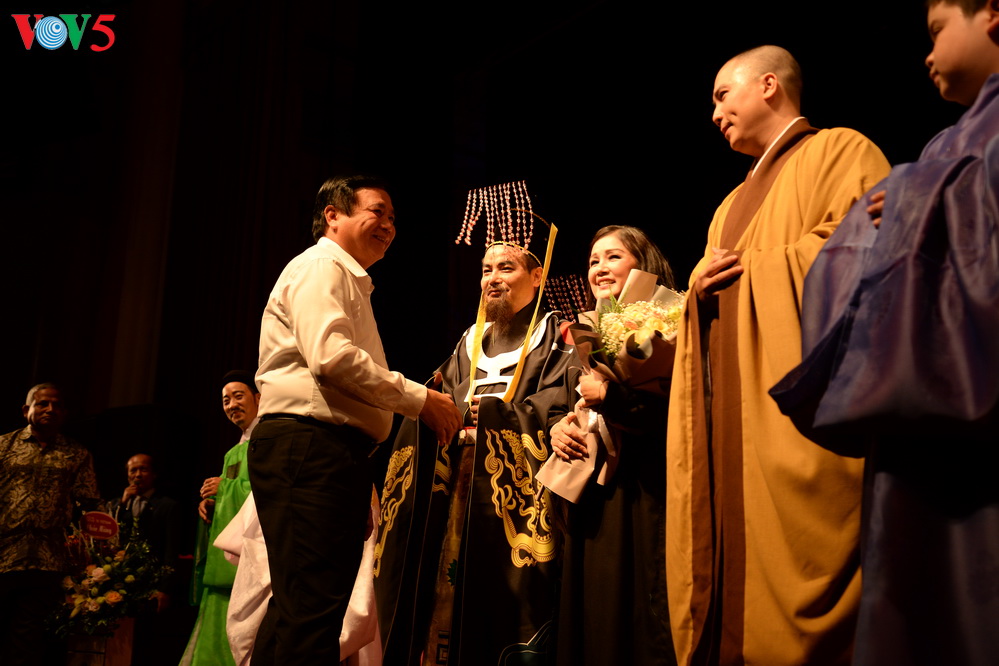 | Đến dự buổi công diễn có: GS.TS Nguyễn Xuân Thắng, Bí thư Trung ương Đảng, Chủ tịch Hội đồng Lý luận Trung ương, Giám đốc Học viện Chính trị Quốc gia Hồ Chí Minh; PGS. TS Nguyễn Thế Kỷ, Uỷ viên Trung ương Đảng, Tổng Giám đốc Đài Tiếng nói Việt Nam, Chủ tịch Hội đồng Lý luận, Phê bình Văn học Nghệ thuật Trung ương; Bà Lê Thị Thuỷ, Uỷ viên Trung ương Đảng, Bí thư Tỉnh uỷ Hà Nam; Ông Bùi Trường Giang, Phó Trưởng Ban Tuyên Giáo Trung ương; Ông Lê Minh Tuấn, Phó Cục Trưởng Cục Nghệ thuật biểu diễn; và NSND Lê Tiến Thọ, Chủ tịch Hội nghệ sĩ sân khấu Việt Nam. |