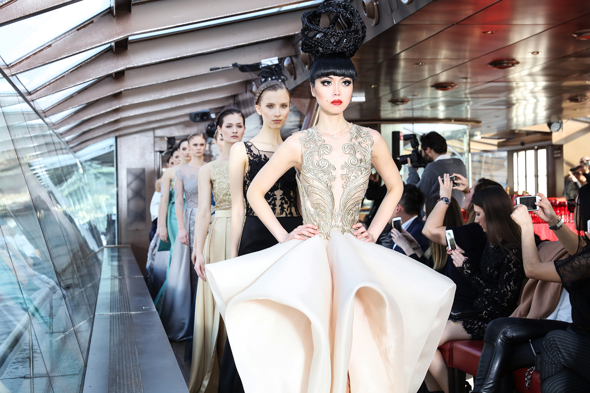 Tiếp đó, nhà mốt nổi tiếng của Malaysia Emmanuel Haute Couture đã trình diễn 15 mẫu thiết kế với những chi tiết được trang trí và thêu tỉ mỉ, đường cắt táo bạo, nhiều tầng và họa tiết hoa trang trí. Bộ sưu tập mang phong cách quyến rũ và mê hoặc của phương Đông và hòa nhập vào thế giới phương Tây.