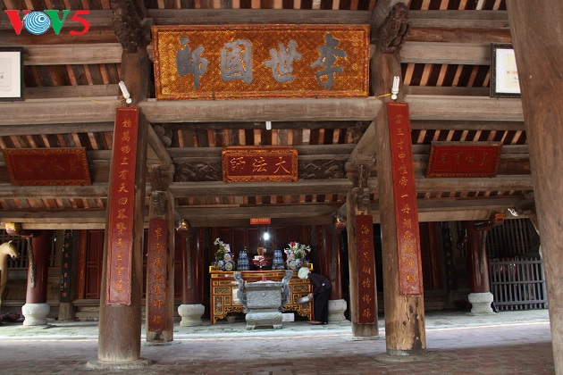 | Trong tòa Giá roi có nhiều hoành phi và câu đổi cổ, có niên đại từ thời Nguyễn. Bức hoành phi lớn nhất ở giữa là “Lý thế quốc sư”, nghĩa là Quốc sư thời Lý ( Lời của Dương Không Lộ). Hoành phi nhỏ ngay dưới là Đại pháp sư. Bức hoành phi bên phải là Mỹ tục khả phong, bức bên trái là Thiện tục khả phong. Đây là những mỹ tự mà các triều đại phong kiến ban tặng cho làng Dũng Nhuệ. |