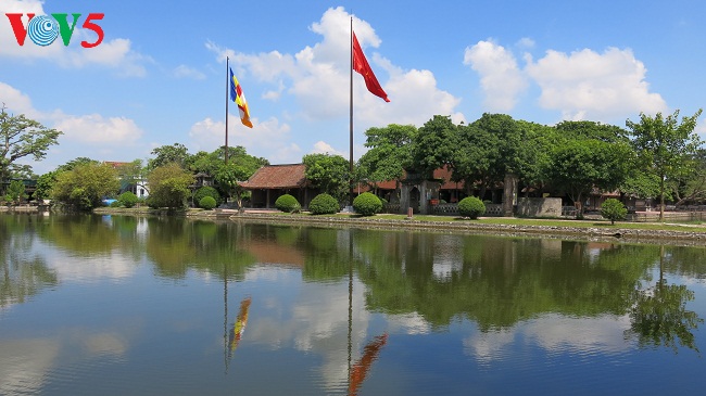 | Khung cảnh sân chùa Keo yên bình |