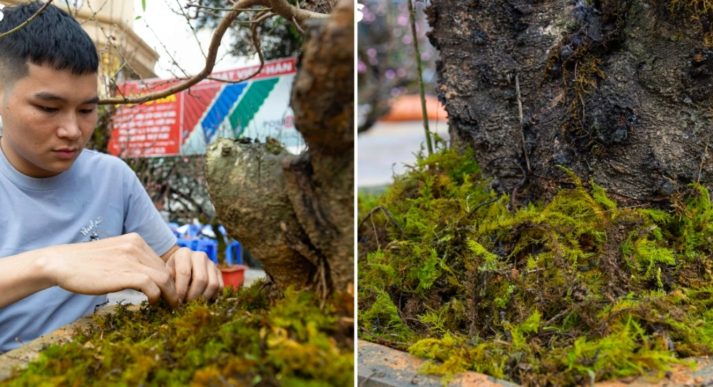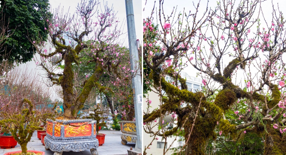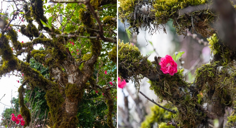 Đặc biệt, người bán cho biết, ngoài vẻ đẹp từ nụ hoa, điểm giá trị nhất của đào cổ Sapa là những mảng rêu bám trên thân cây, vừa làm tăng sự thẩm mỹ lại vừa cung cấp độ ẩm cho cây. Rêu phải được nuôi từ rất lâu thì mới xanh tốt và bám sâu vào thân cây.