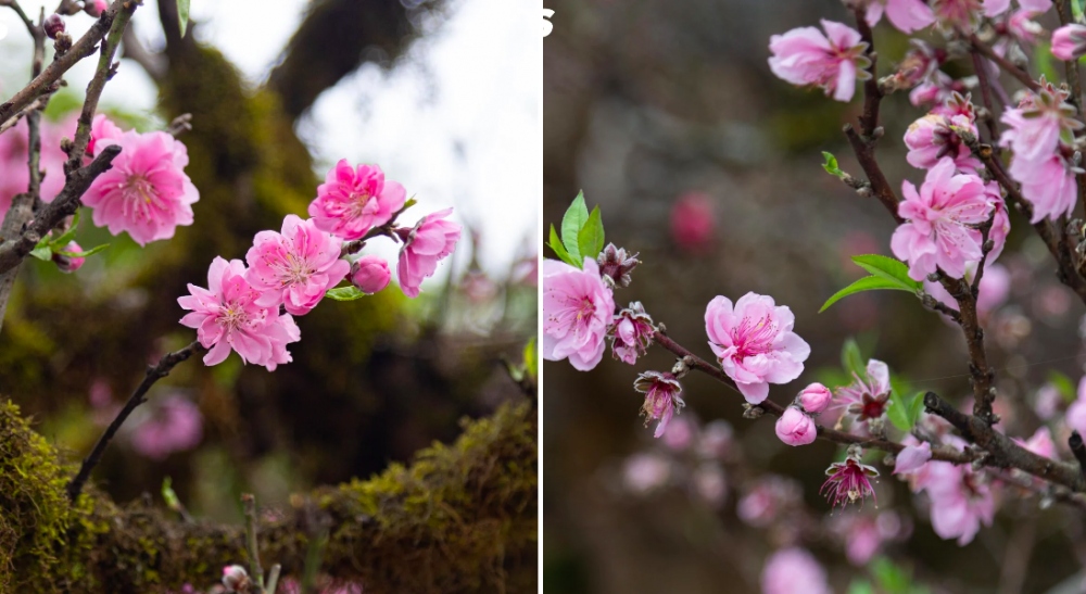 Thân cây đào cổ Sapa xù xì, mỗi gốc là một thế khác nhau, cành phủ đầy rêu phong, mang nét đẹp tự nhiên của núi rừng