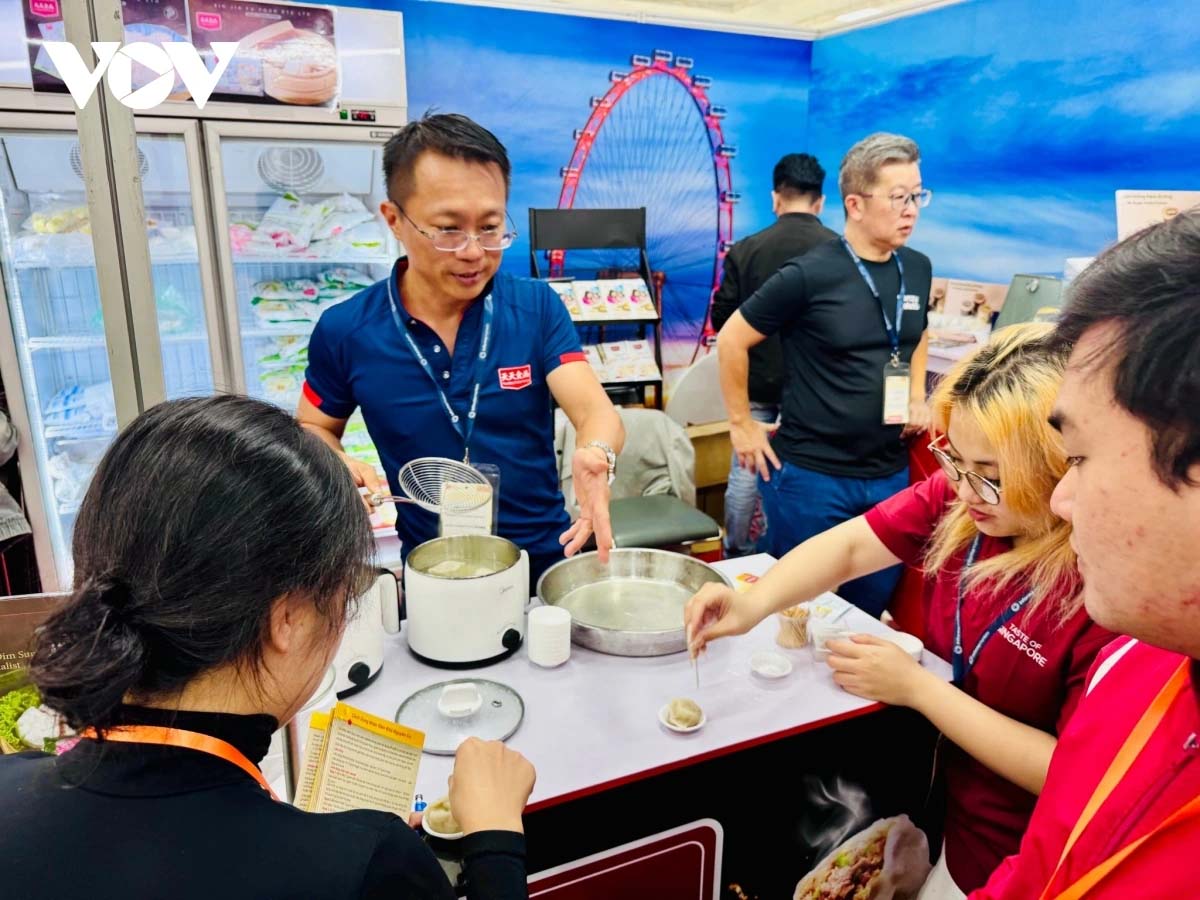 | Không gian Singapore mang đến những món ăn đặc trưng của Đảo quốc như bánh bao, há cảo, dimsum... Ẩm thực Singapore là biểu hiện của sự đa dạng sắc tộc, với hương vị Malaysia, Trung Quốc, Ấn Độ... |