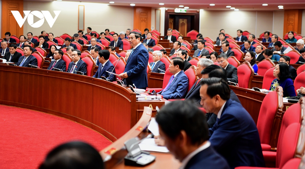Trước khi khai mạc Hội nghị lần thứ 10 Ban Chấp hành Trung ương Đảng Cộng sản Việt Nam khóa XIII, Thủ tướng Phạm Minh Chính thông tin về tình hình khắc phục hậu quả bão lũ ở nhiều tỉnh, thành thời gian vừa qua.