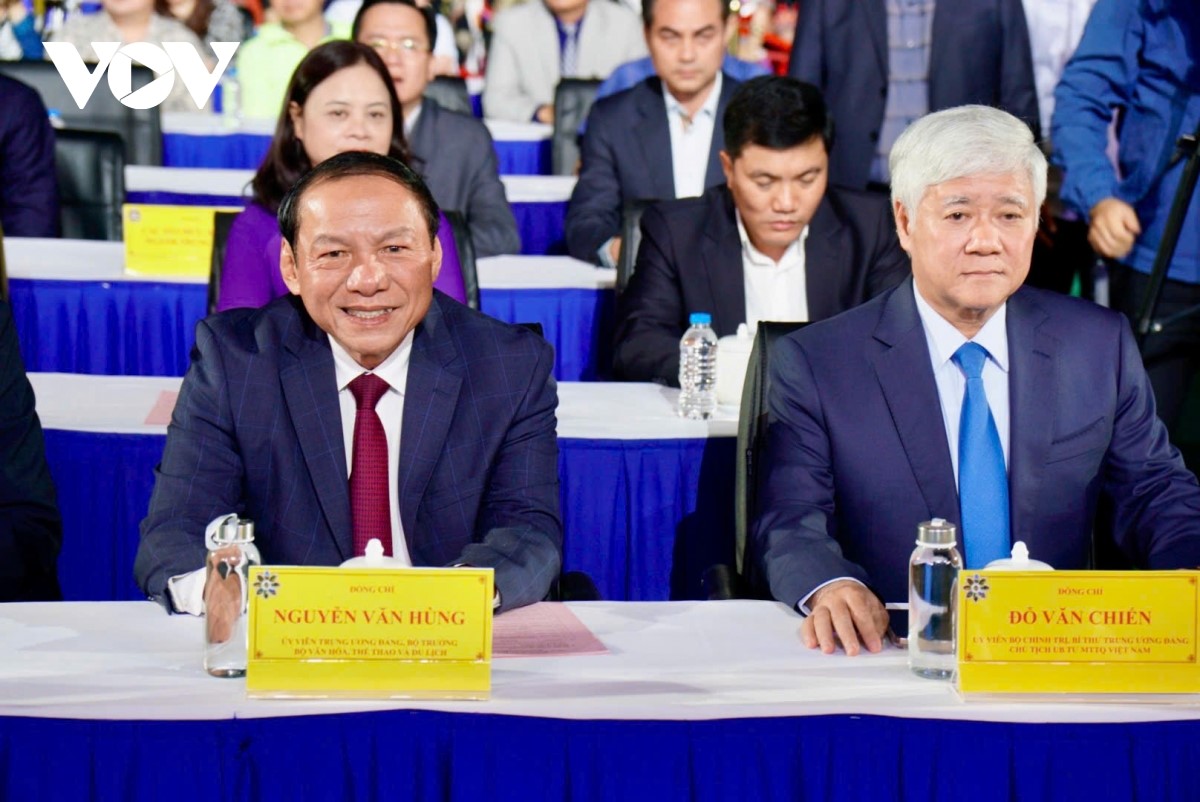 Tham dự lễ khai mạc có Ủy viên Bộ Chính trị, Bí thư Trung ương Đảng, Chủ tịch Ủy ban Trung ương Mặt trận Tổ quốc Việt Nam Đỗ Văn Chiến; Ủy viên Trung ương Đảng, Bộ trưởng Bộ Văn hóa, Thể thao và Du lịch Nguyễn Văn Hùng. |
