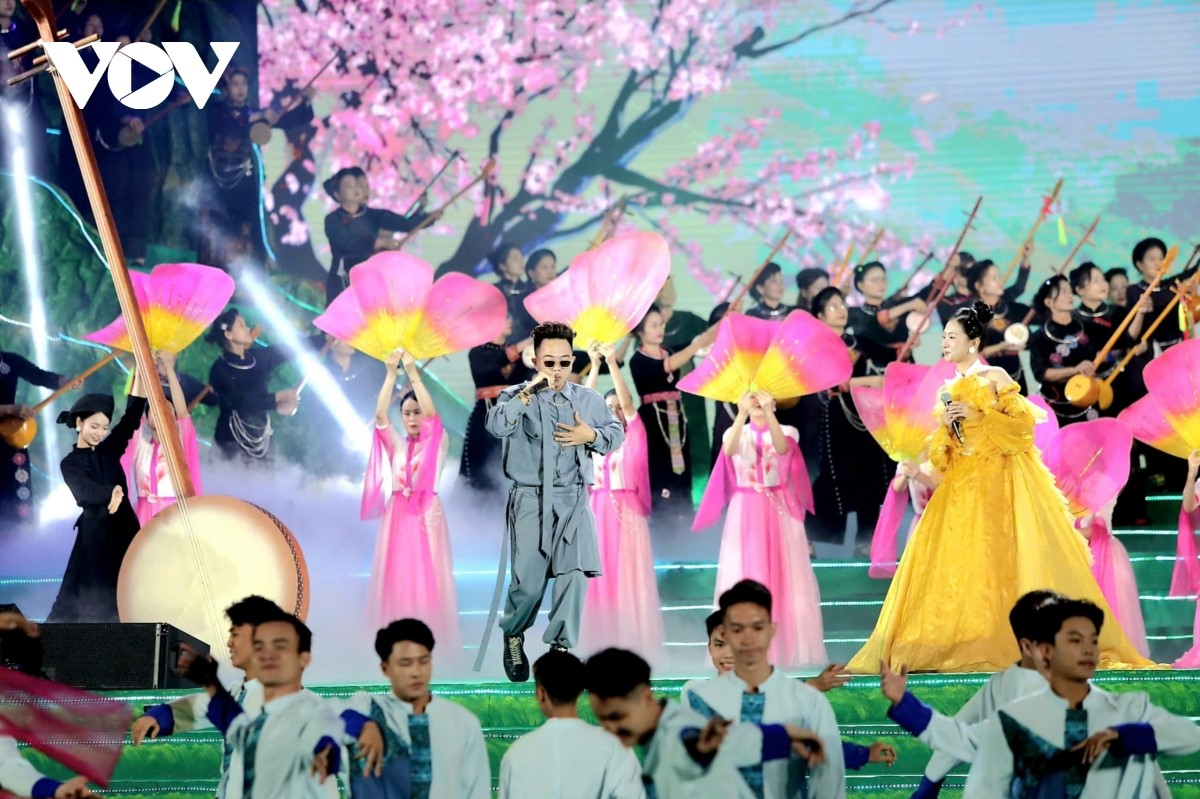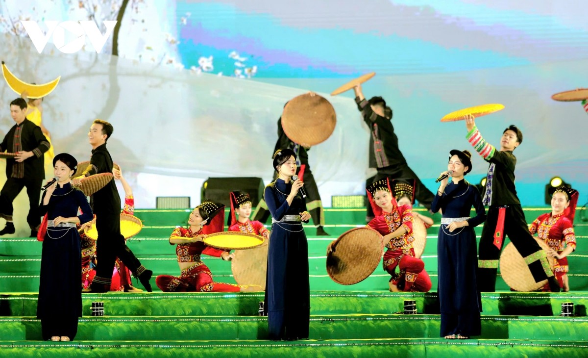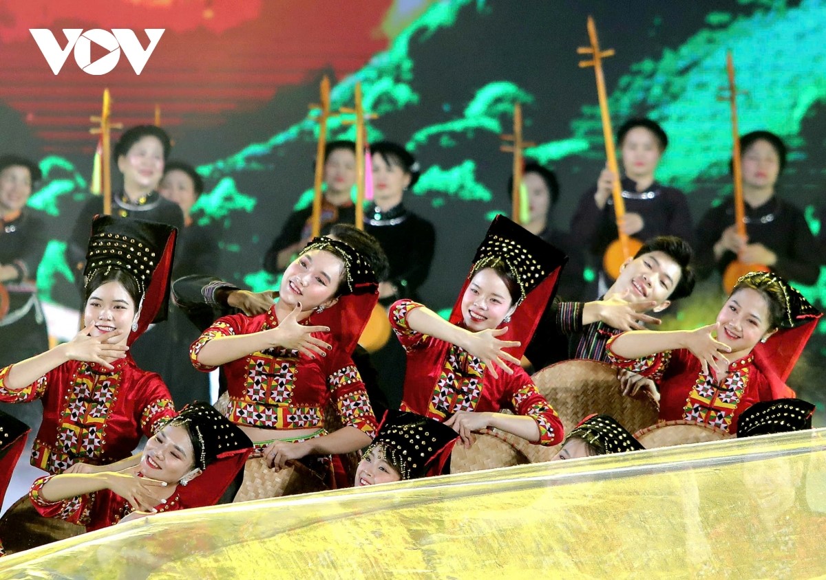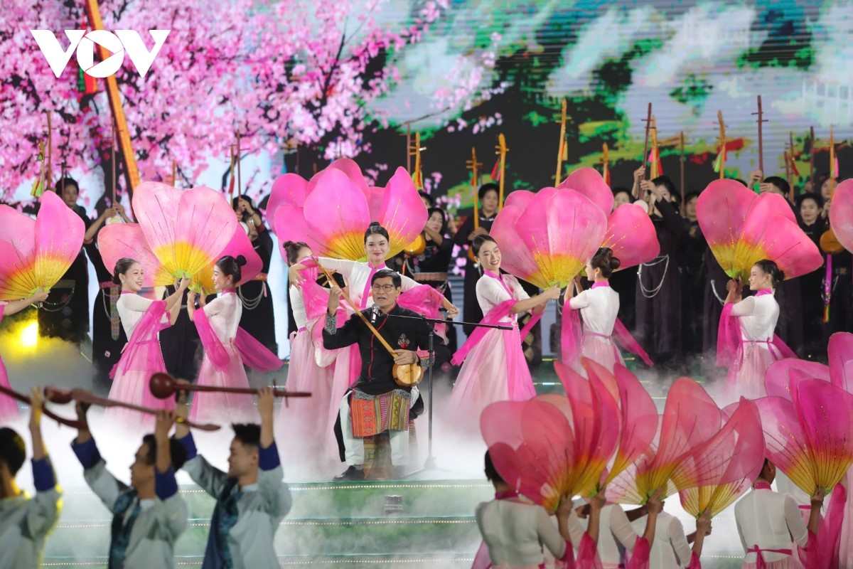 Các tiết mục văn nghệ ca ngợi vẻ đẹp văn hóa của 8 tỉnh vùng Đông Bắc với hoạt cảnh núi non kì vĩ, phong cảnh hữu tình nên thơ |