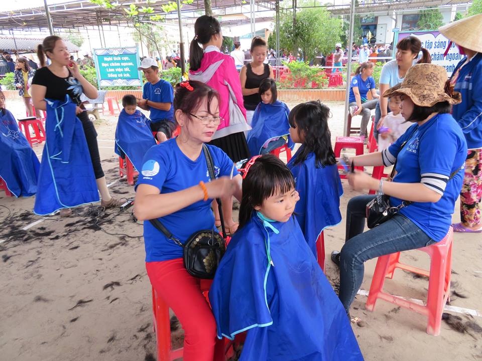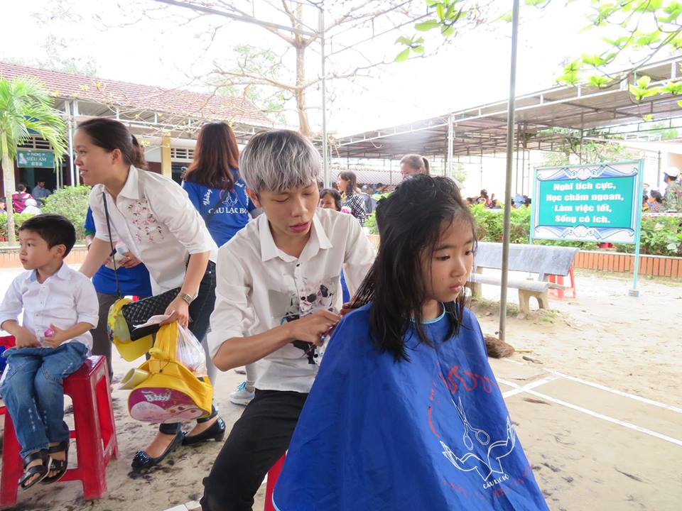 Tình nguyện viên tổ chức cắt tóc, tặng quà cho người dân và trẻ em