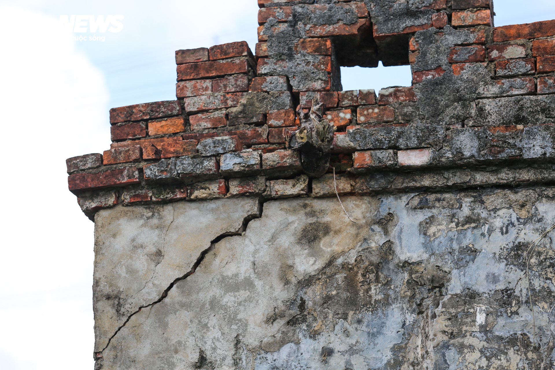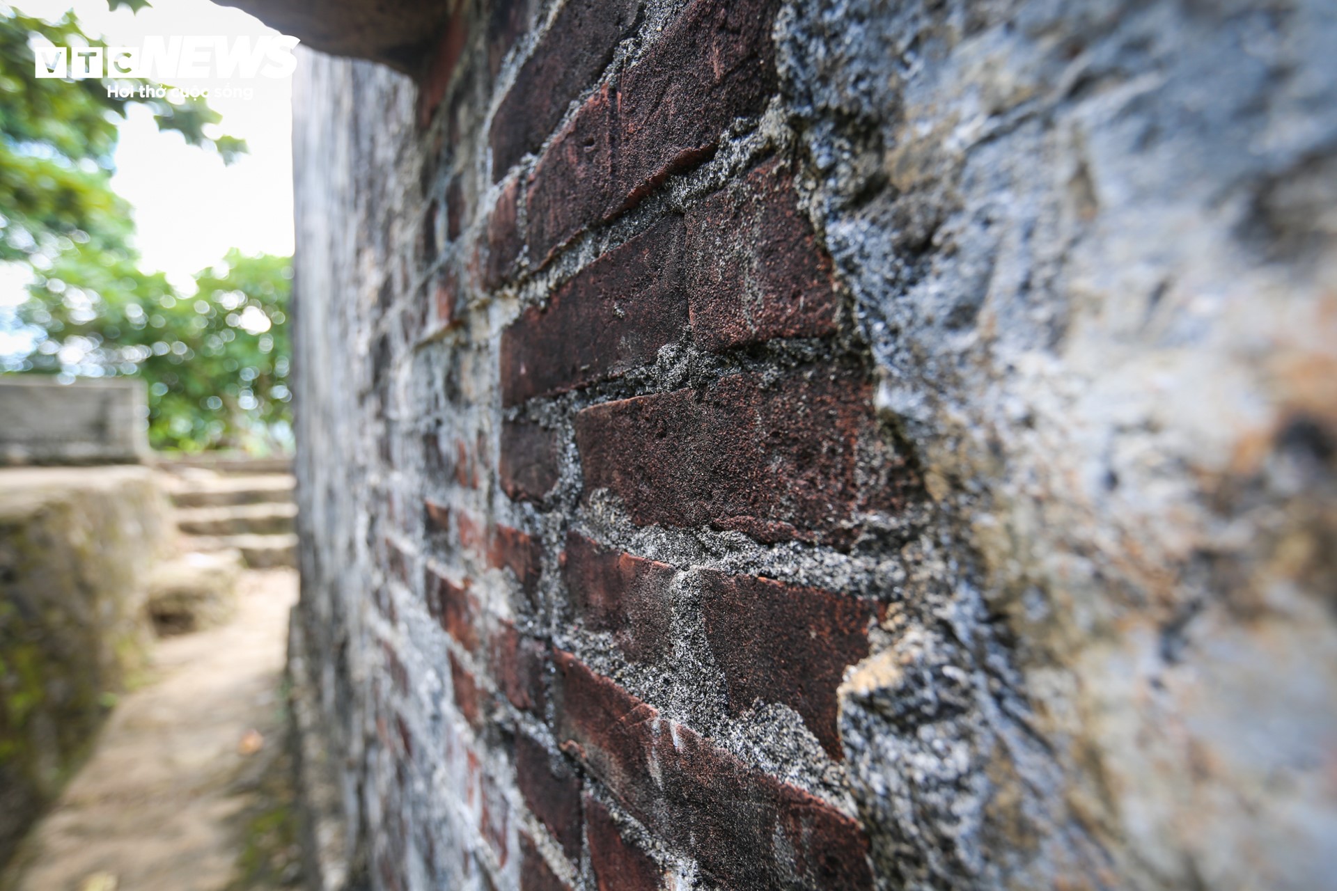 Những mảng tường bong tróc theo thời gian, mang nét đẹp hoài cổ, rêu phong. |