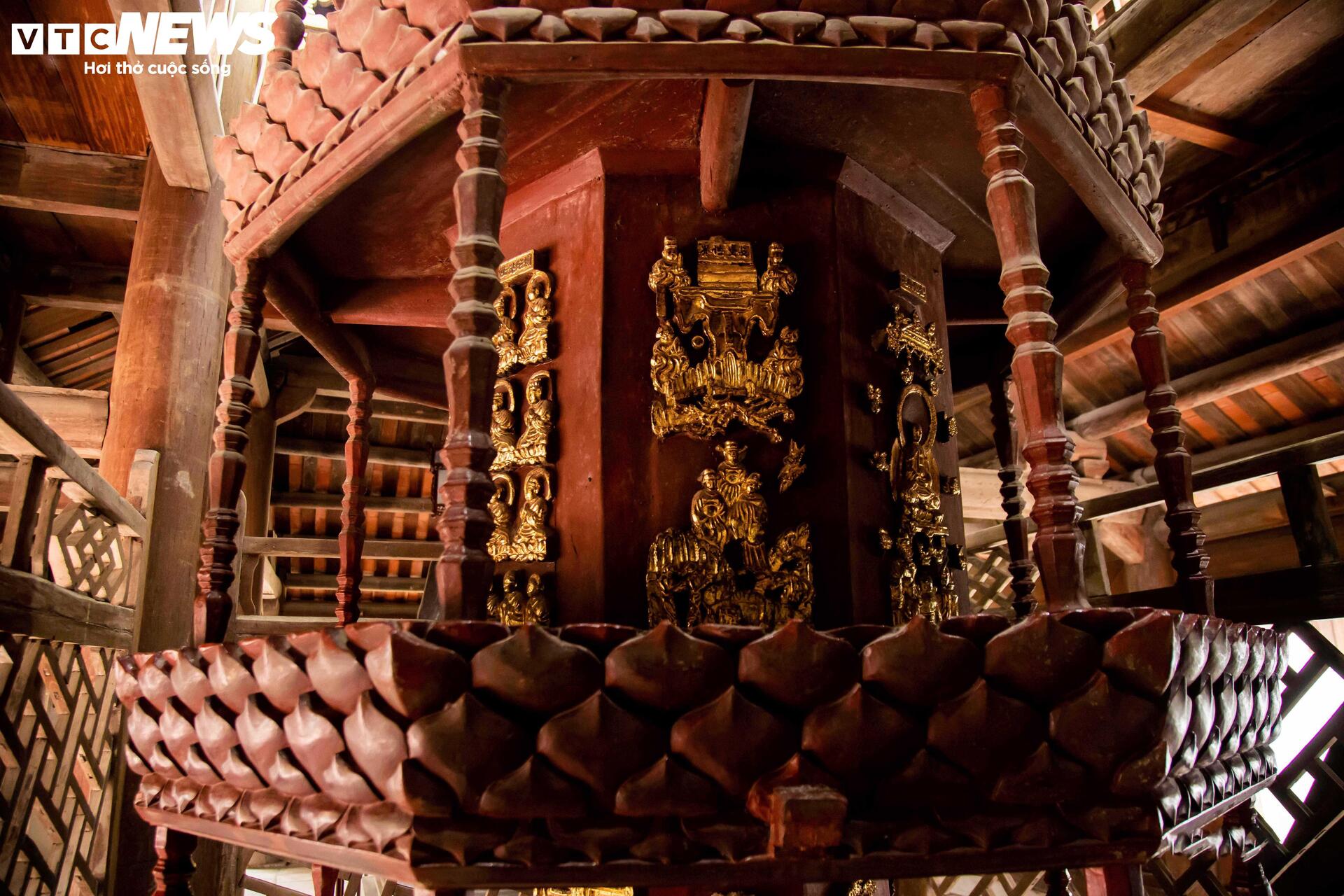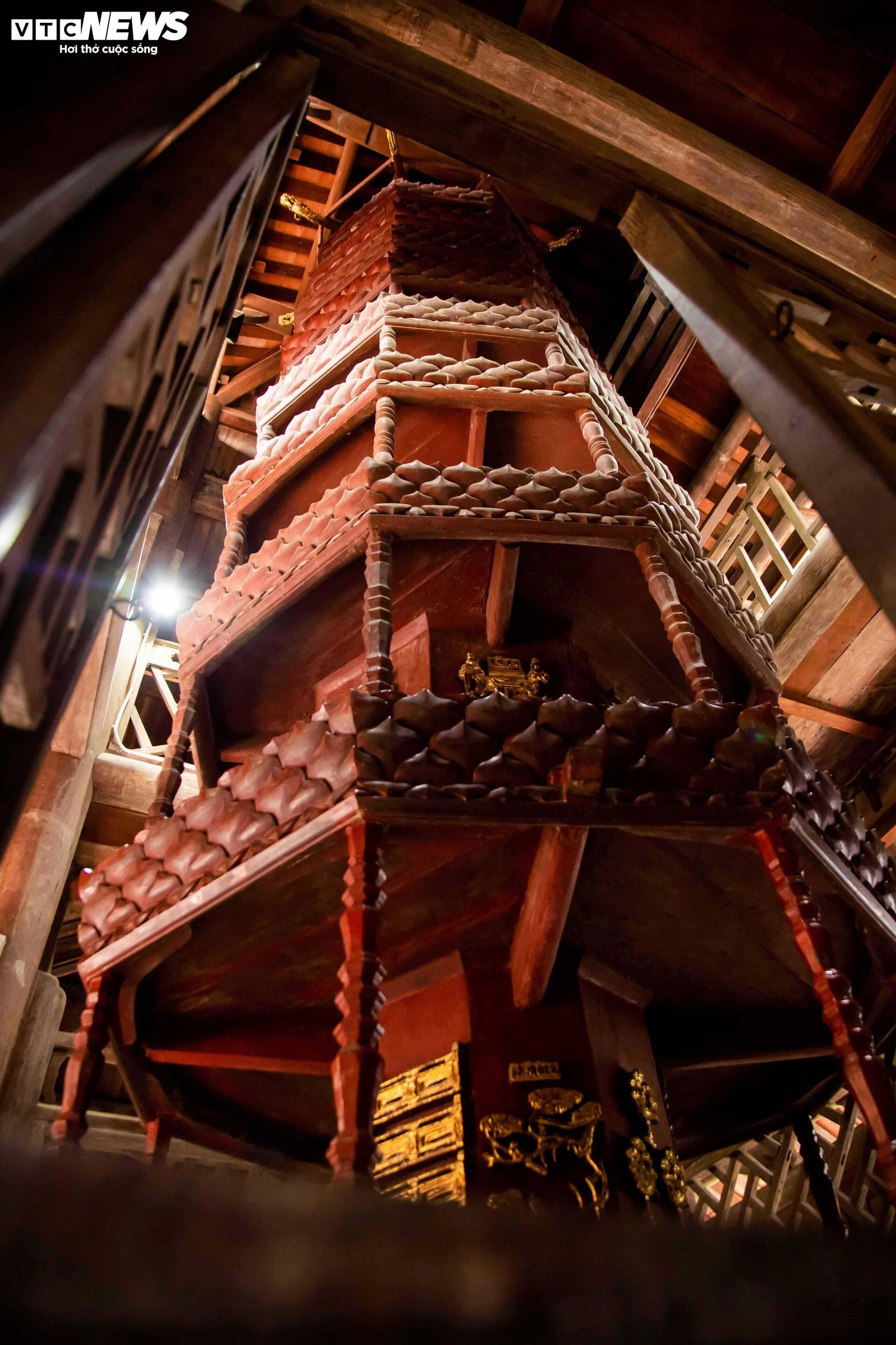 | Tháp được xây dựng 9 tầng với cấu trúc hình bát giác độc đáo. Mỗi tầng có tám mặt, được chạm khắc những bức phù điêu tinh xảo. Trải qua nhiều thế kỷ, điều kỳ diệu là tháp vẫn có thể xoay được mà không phát ra bất kỳ âm thanh nào, cho thấy sự tài hoa của các nghệ nhân thời xưa. Đây là tòa Cửu Phẩm Liên Hoa duy nhất còn sót lại ở Việt Nam và được mệnh danh là đẹp nhất. |