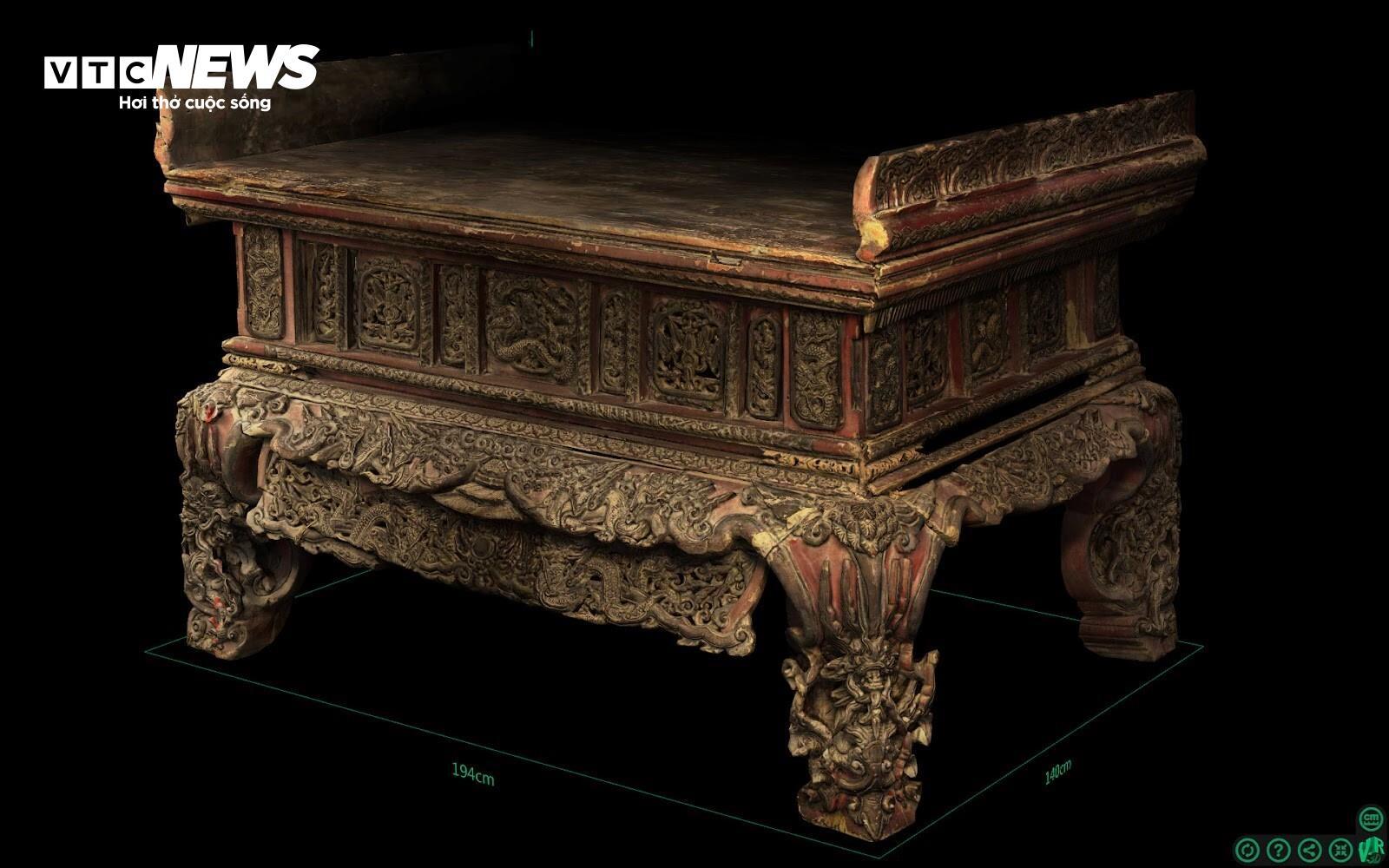 | Thân hương án được trang trí bởi các hình tượng rồng, thể hiện qua các đường nét chạm khắc tinh xảo và sống động. Mặt hương án là tấm gỗ lớn, bề mặt được phủ sơn và đánh bóng kỹ lưỡng để bảo vệ lớp gỗ khi đặt lễ vật và đồ thờ. Xung quanh mặt hương án là các cánh sen ngửa, được chạm khắc tinh tế và xếp chồng lên nhau, tượng trưng cho đóa sen đang nở rộ. (Ảnh 3D) |