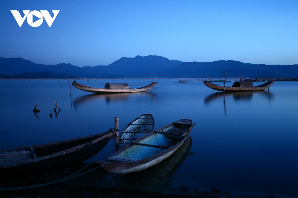 Hoàng hôn buông trên đầm Cầu Hai. Đây là một trong những thời khắc đẹp nhất trong ngày.