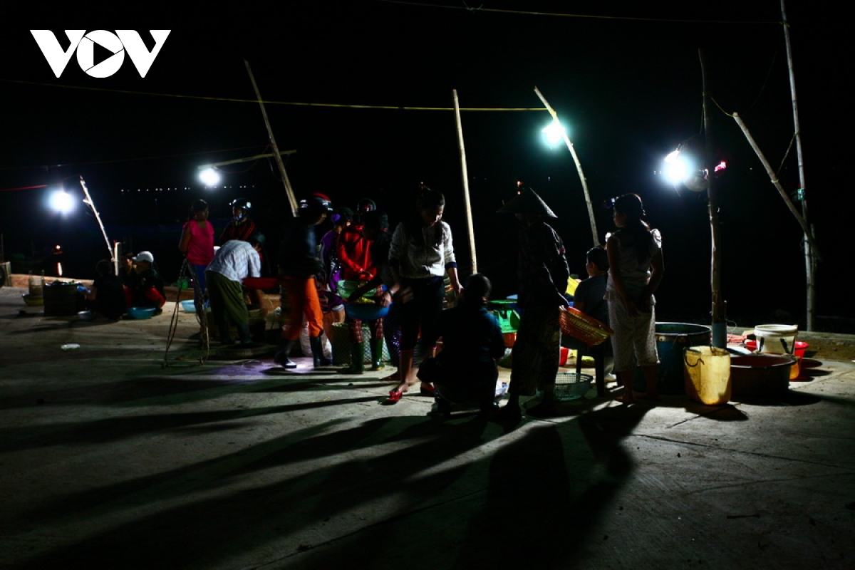 Và khi cá về, được chuyển lên bờ là chợ bắt đầu nhộn nhịp kẻ bán người mua.