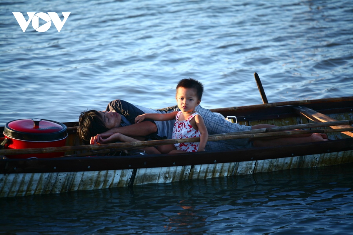 Những giờ phút nghỉ ngơi ngay trên sóng nước. Cuộc sống của ngư dân đầm Cầu Hai vất vả nhưng toát lên vẻ đẹp bình dị.