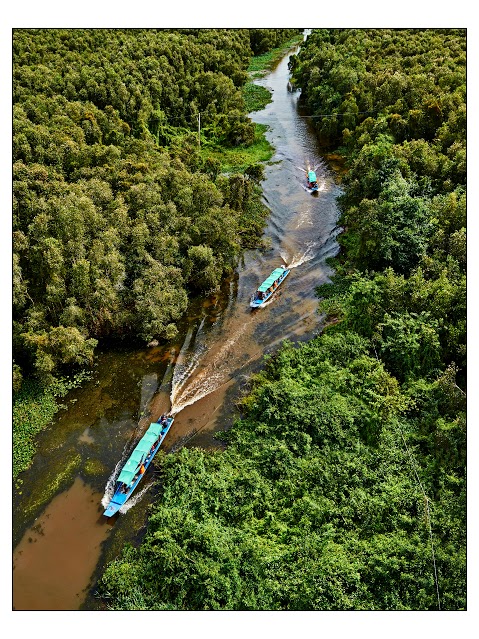 Mục đích của triển lãm còn là tạo sự hấp dẫn, mời gọi đến thăm, trải nghiệm, khám phá của du khách trong nước và quốc tế. Tác phẩm: Trên dòng sông quê. Tác giả: Đặng Kế Cường. |