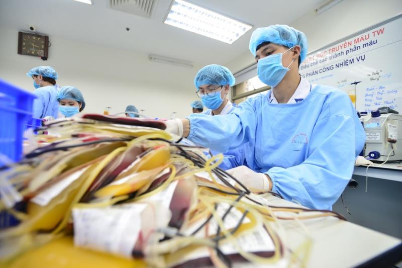 Trong những ngày này, khi nhiều người đến viện hiến máu, các y bác đều làm việc từ 7h30 đến hơn 19h để điều chế xong lượng máu thu được.
