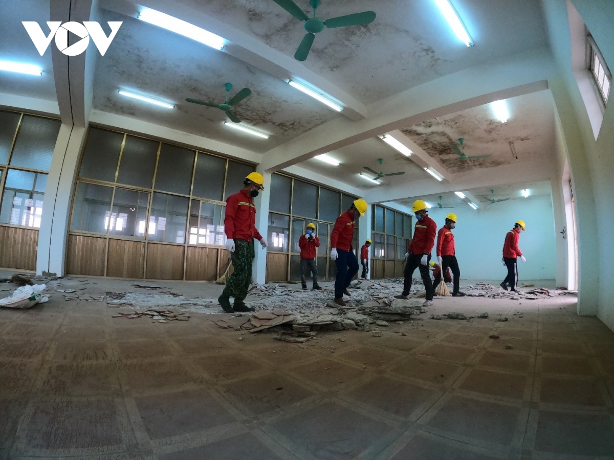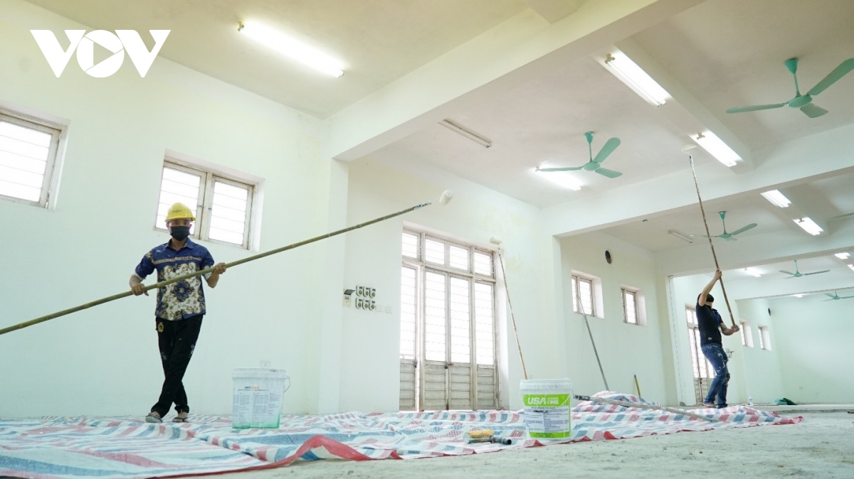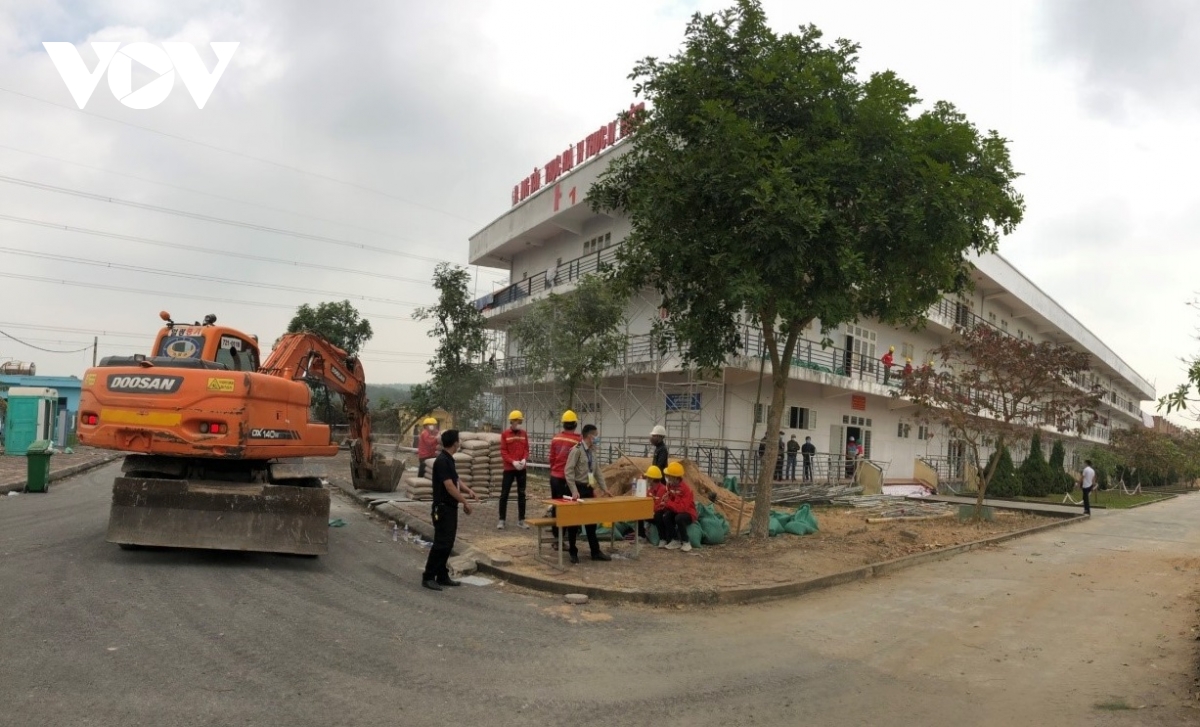 Các nhà thầu đã dồn tổng lực để "làm mới" toàn bộ mặt bằng khu nhà 3 tầng tại khuôn viên Đại học Sao Đỏ, Chí Linh, Hải Dương. Bệnh viện dã chiến số 3 của tỉnh Hải Dương đang dần thành hình với tốc độ khẩn trương...