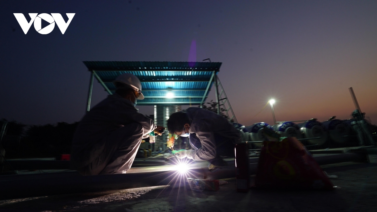 Các kíp công nhân làm việc từ 7h sáng đến 11h đêm để bệnh viện có thể hoàn thành trong thời gian nhanh nhất.