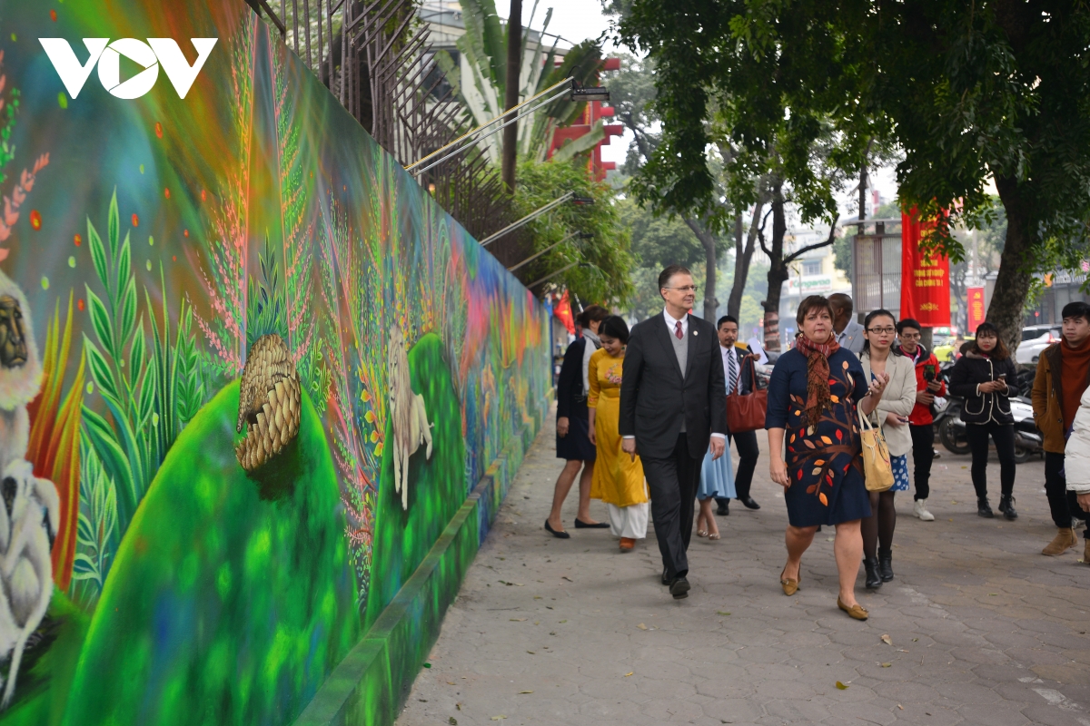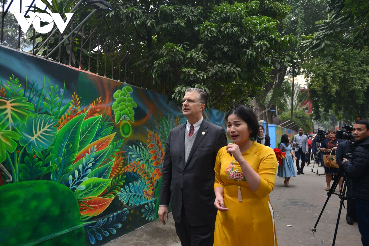 (VOV5) -Đại sứ Hoa Kỳ tại Việt Nam Daniel Kritenbrink đã tổ chức lễ khánh thành bức tranh tường tại Câu lạc bộ Mỹ, 19-21 Hai Bà Trưng, Hà Nội sáng 15/1.