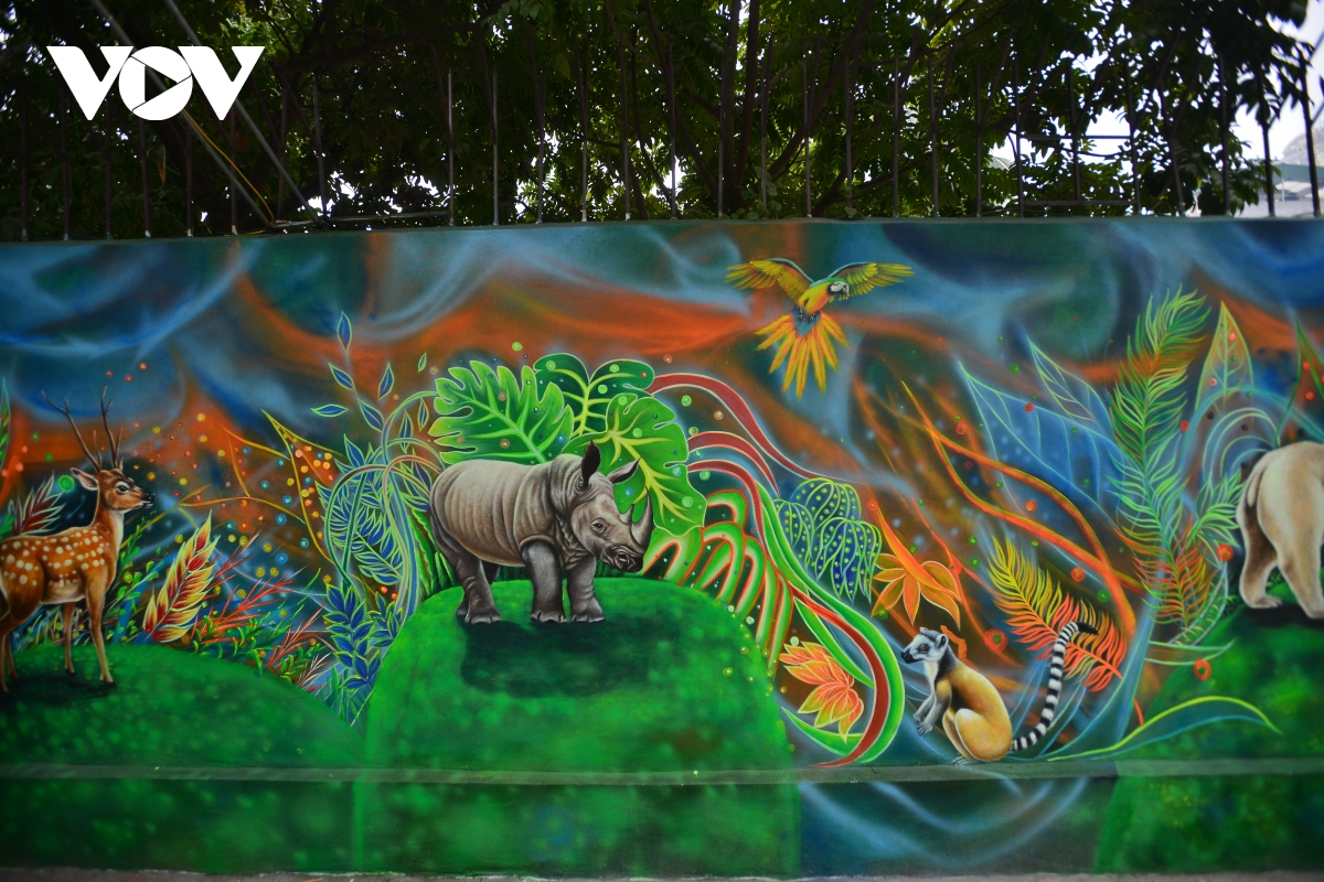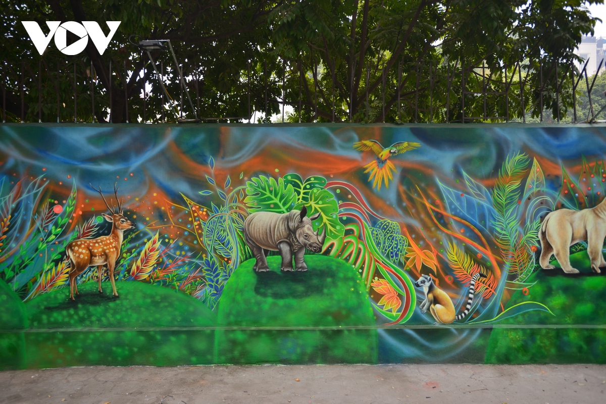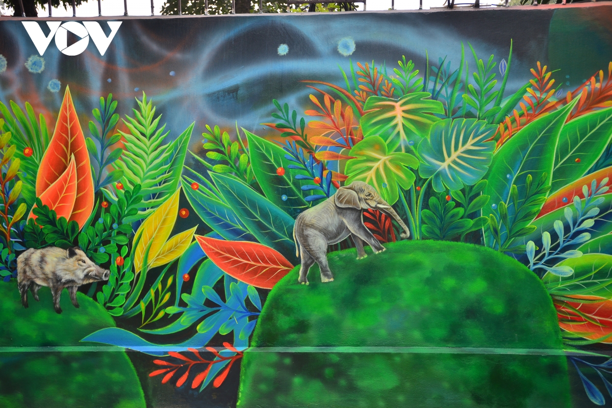Với diện tích khoảng 100 mét vuông, bức tranh tường này hướng tới nâng cao nhận thức về tầm quan trọng của việc bảo vệ môi trường bằng cách tái hiện một cách sống động các loài động và thực vật.