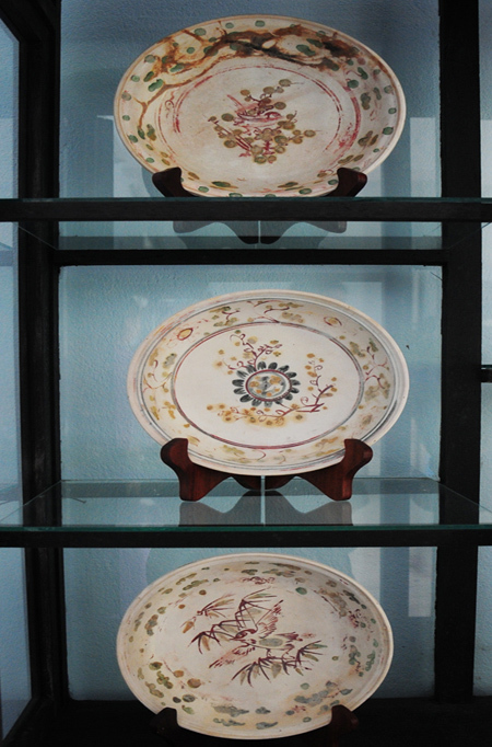 Dĩa gốm có họa tiết hoa, lá, chim muông. Ông Đoàn Sung, Chủ tịch HĐQT Công ty Đoàn Ánh Dương - đơn vị từng tham gia khai quật cổ vật gốm sứ từ con tàu chìm ở vùng biển Cù Lao Chàm cho hay, con tàu chìm này chở gốm sứ do người Việt xưa sản xuất. Điều này cho thấy ngay từ rất sớm, người Việt đã giữ vai trò chủ đạo trên con đường "gốm sứ" trên biển.
