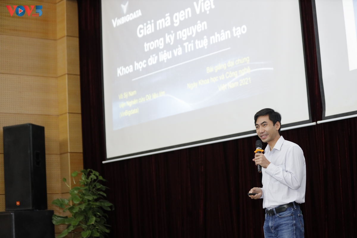 | Chương trình bao gồm 6 bài giảng: “Từ khảo cổ đến công nghệ thực tế ảo: Trường hợp Chùa Một Cột thời Lý năm 1105” của PGS. TS. Trần Trọng Dương; “Một số bài toán hình học và giản đồ cây trong virus” của PGS.TS. Nguyễn Thế Toàn; “Công nghệ sản xuất vắc xin COVID-19: Bối cảnh Việt Nam – Thế giới trong sản xuất vắc xin và những điều cần lưu ý khi tiêm vắc xin COVID–19 tại Việt Nam” của TS. BS. Phạm Quang Thái; “Giải mã gen Việt trong kỷ nguyên Khoa học Dữ liệu và Trí tuệ nhân tạo”TS. Võ Sỹ Nam (Viện Nghiên cứu Dữ liệu lớn); “Linked Data cho dữ liệu mở trong nông nghiệp nông thôn” của PGS.TS. Hoàng Hữu Hạnh (Hợp tác xã Nông nghiệp Số); “Thống kê - Chiếc cầu kết nối Toán học với các Khoa học thực nghiệm” của PGS.TS. Hồ Đăng Phúc (Viện Toán học). |