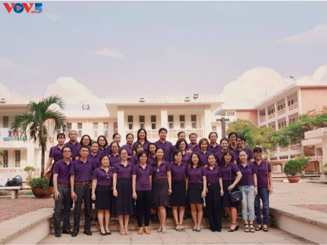 Trưởng Khoa NN& VH Pháp Đinh Hồng Vân (giữa) cùng các giáo viên trong Khoa. |