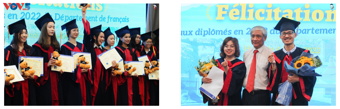 Hình ảnh sinh viên khoa NN&VH Pháp khoá K52 trong buổi lễ tốt nghiệp. |