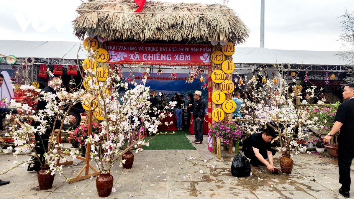 12 trại văn hóa dân tộc của các xã, phường tham gia Lễ hội hoa ban thành phố Sơn La. |