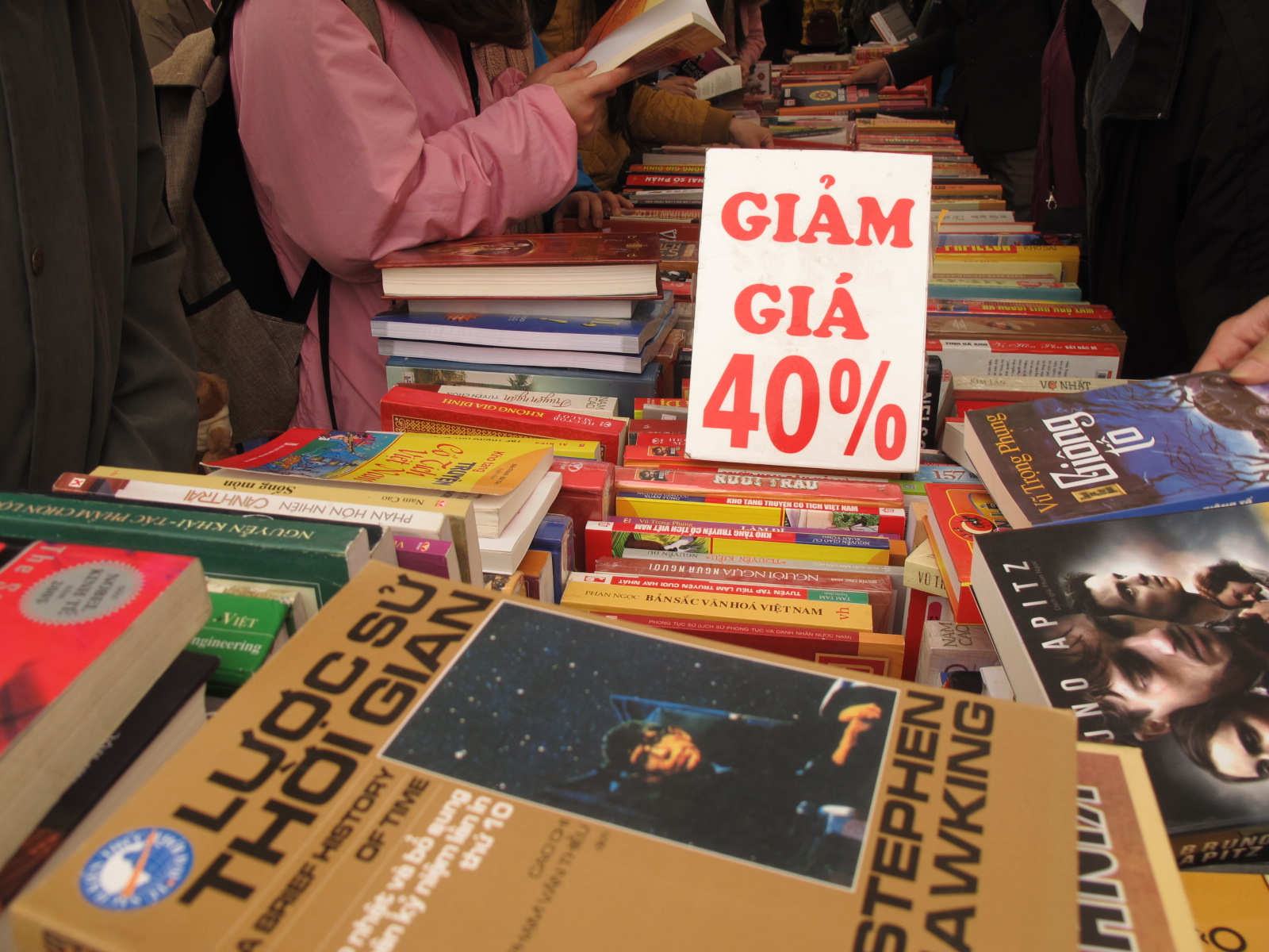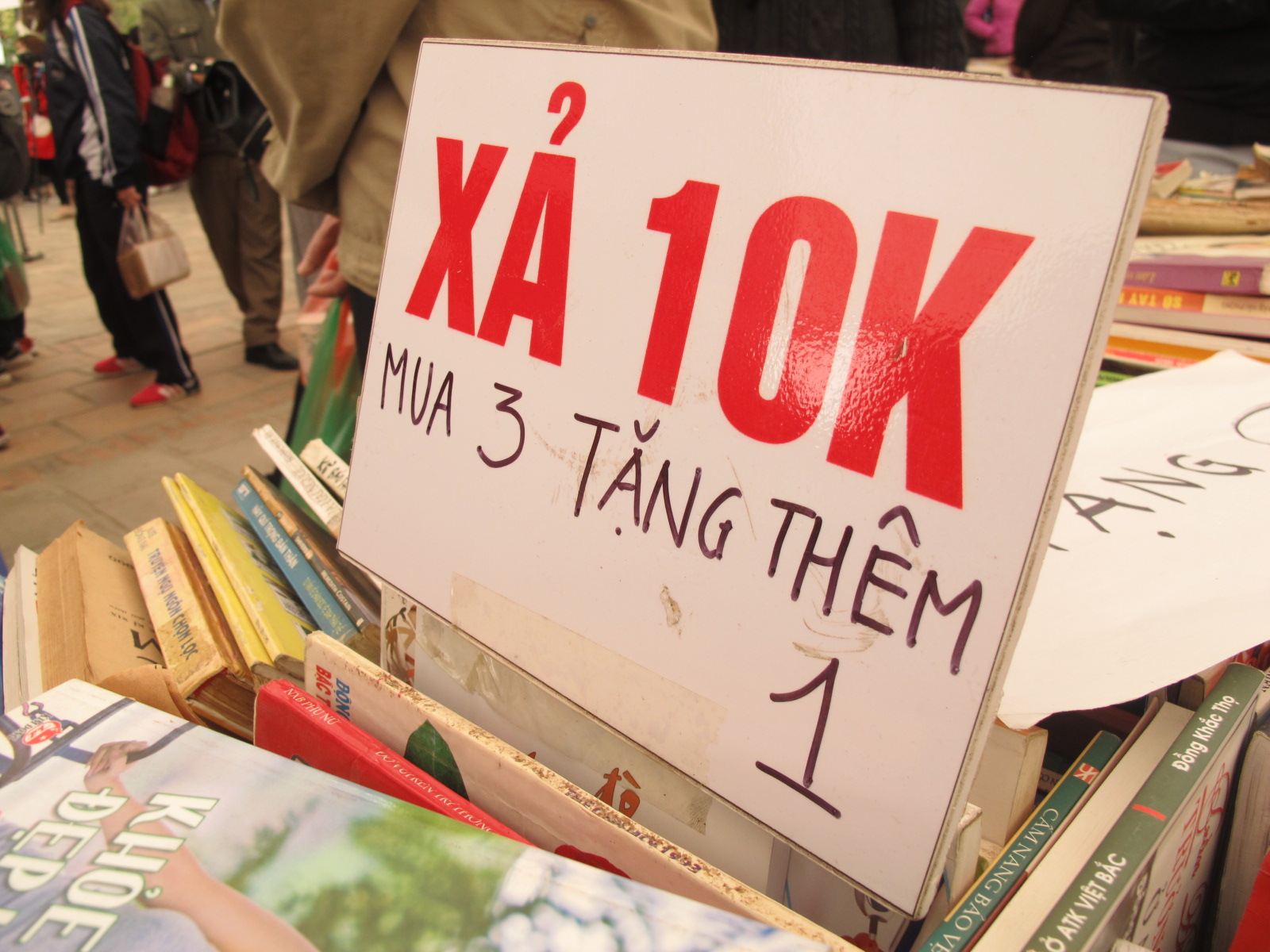 | Sách đồng giá 10.000 đồng tại một quầy hàng |