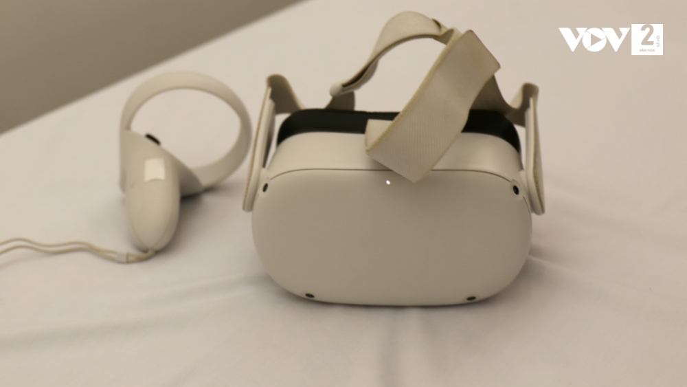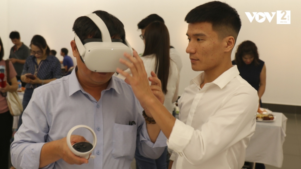 Khách tham quan được sử dụng kính thực tế ảo (VR) để khám phá triển lãm.