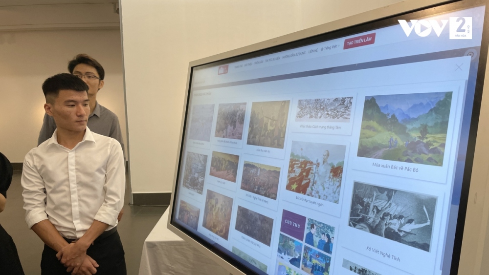Tác phẩm “Bác Hồ đọc tuyên ngôn” của họa sĩ Hoàng Hoa Mai; “Xô Viết Nghệ Tĩnh” của nhóm 6 tác giả Phạm Văn Đôn, Nguyễn Sỹ Ngọc, Nguyễn Đức Nùng, Huỳnh Văn Thuận, Trần Đình Thọ, Nguyễn Văn Tỵ; “Người đàn bà đi tới mặt trời” của họa sĩ Đỗ Chung… được trưng bày 3D, giúp người xem điều chỉnh góc nhìn, phóng to, tương tác với bức tranh.