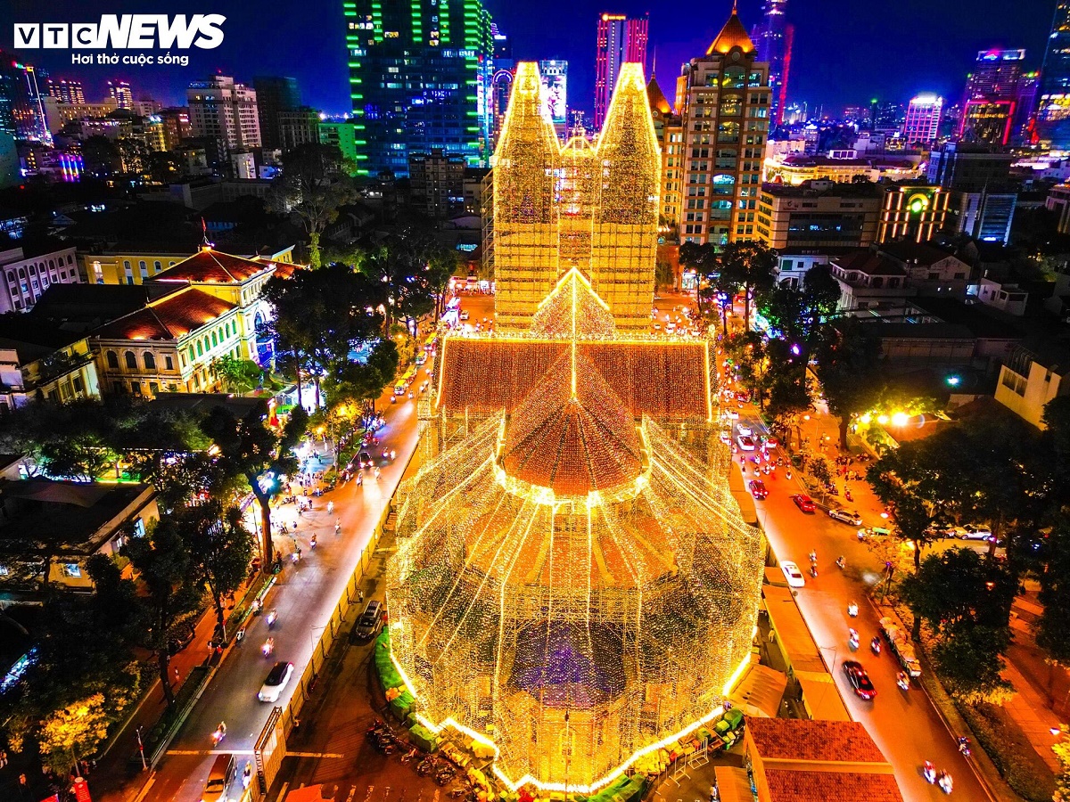 Linh mục Ignatio Hồ Văn Xuân, Trưởng ban trùng tu nhà thờ, cho biết đây là lần thứ 2 nhà thờ Đức Bà trang hoàng đón Giáng sinh từ khi sửa chữa, trùng tu vào năm 2017. Năm 2023, nhà thờ được trang trí 80.000m dây đèn LED để thắp sáng 2 tháp chuông. Ảnh: Lương Ý/VTC News |